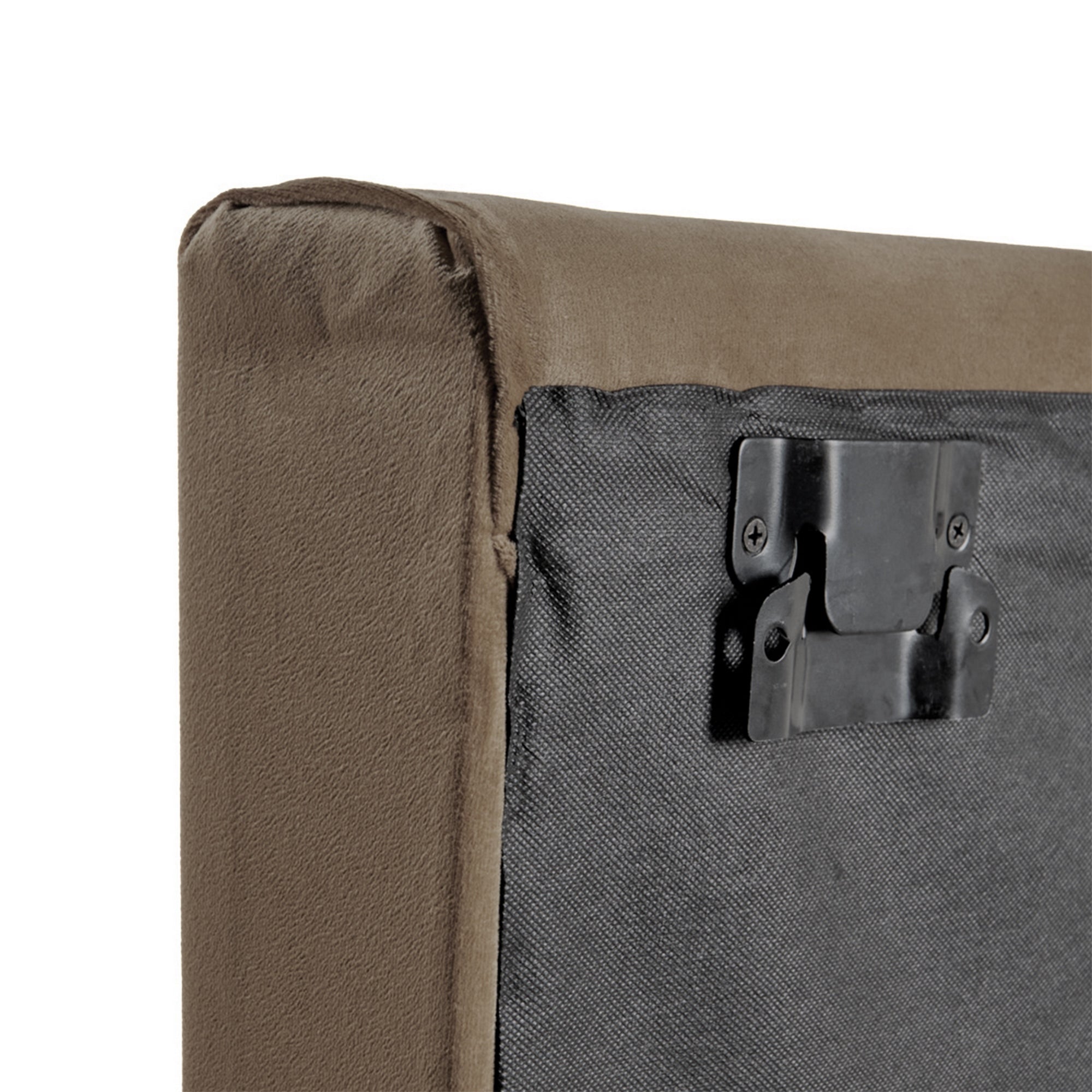 Descripción:  Fabricado en Tela. Con acabado en color Castano. Medidas: 180 x 120 x 8 cm. Cabecera Tapizado en Tela Velvet. NOTA: Los accesorios y otros muebles de las fotografías, se venden por separado. Por efectos de iluminación de la fotografía, algunos tonos de colores pueden variar con respecto al color real.  |