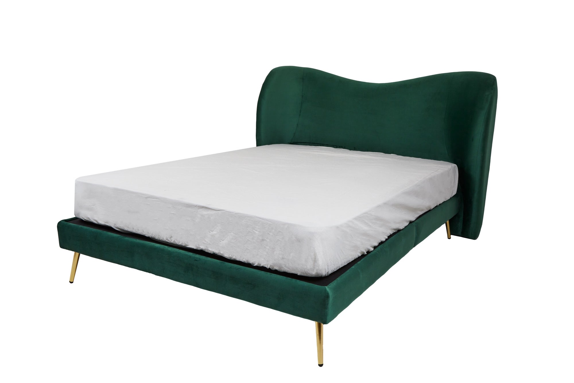 Fabricado en Tela. Con acabado en color Verde. Medidas: 144 x 31 x 197 cm. Medida Cabecera 167 x 110 x 29. Base y cabecera matrimonial tapizada en terciopelo con hule espuma.. NOTA: Los accesorios y otros muebles de las fotografías, se venden por separado. Por efectos de iluminación de la fotografía, algunos tonos de colores pueden variar con respecto al color real.