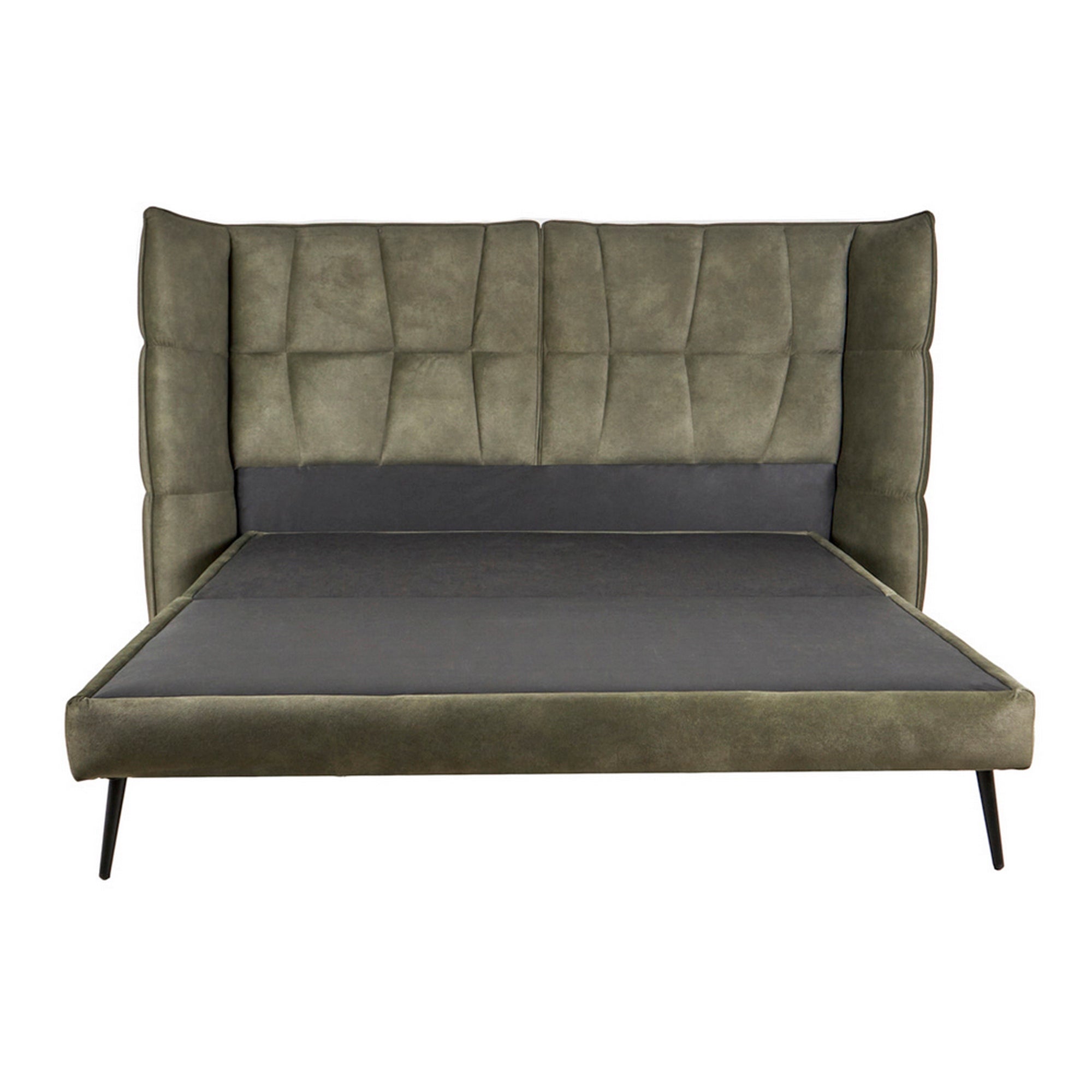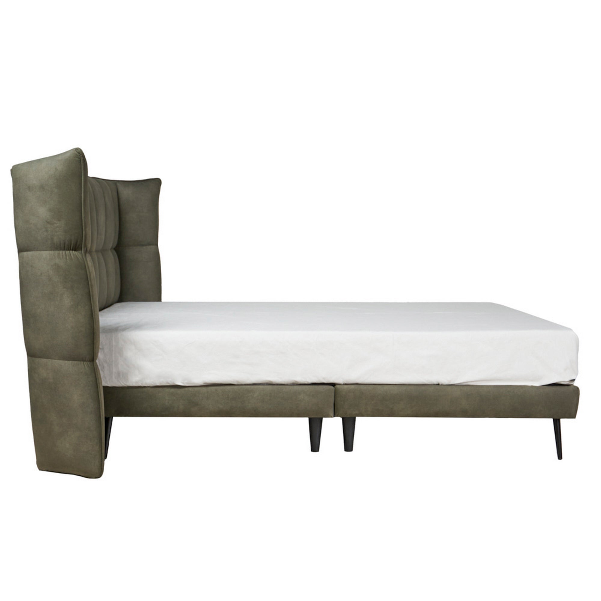 Fabricado en Tela. Con acabado en color Verde. Medidas: 145 x 30 x 207 cm. Medida Cabecera 189 x 117 x 34. Cama Matrimonial con Cabecera y Base Tapizada en Tela Color Café Plomo con Estructura de Madera y Patas Cónicas. NOTA: Los accesorios y otros muebles de las fotografías, se venden por separado. Por efectos de iluminación de la fotografía, algunos tonos de colores pueden variar con respecto al color real.