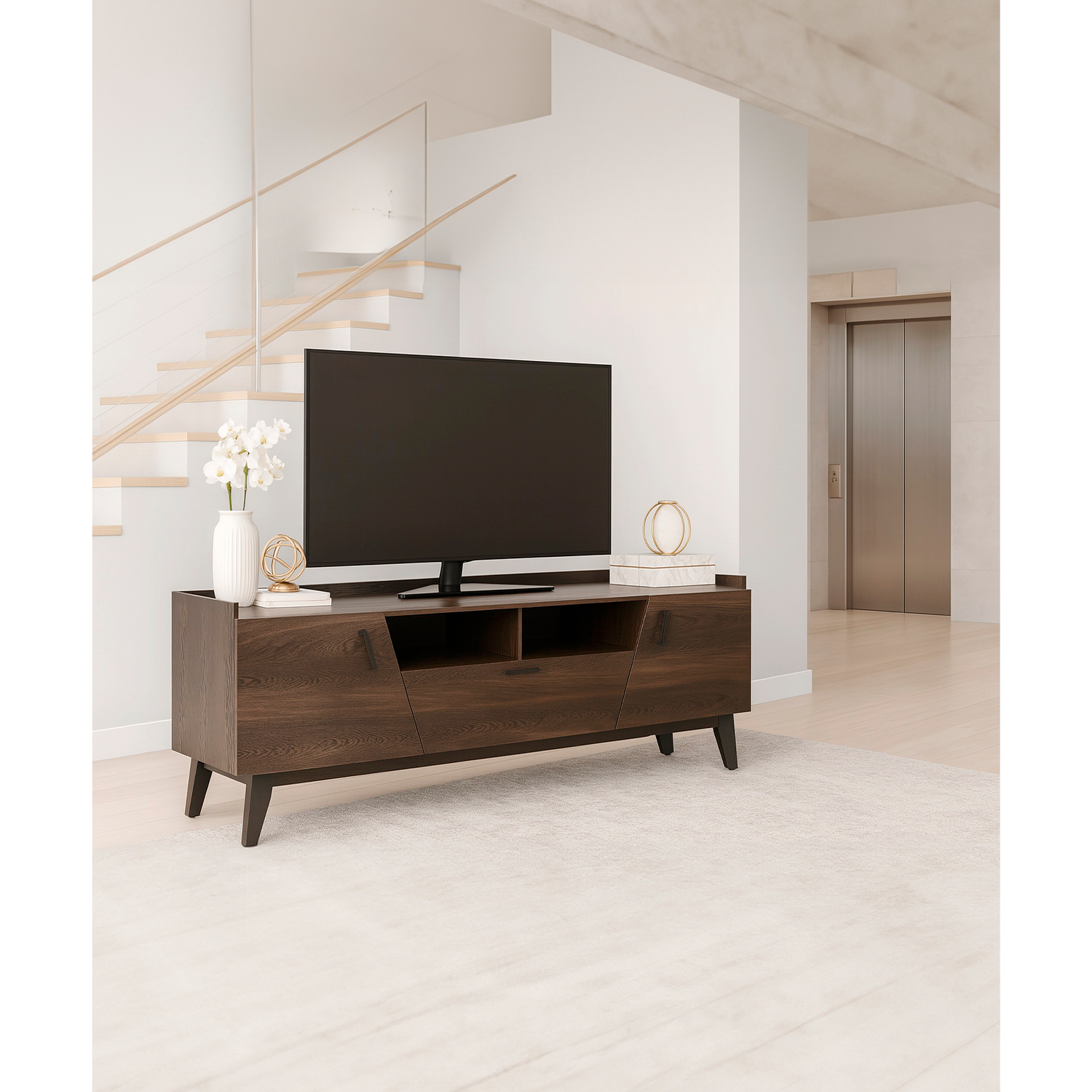Fabricado en Madera y Melamina. Con acabado en color Nogal. Medidas: 200 x 67 x 40 cm. NOTA: Los accesorios y otros muebles de las fotografías, se venden por separado. Por efectos de iluminación de la fotografía, algunos tonos de colores pueden variar con respecto al color real.