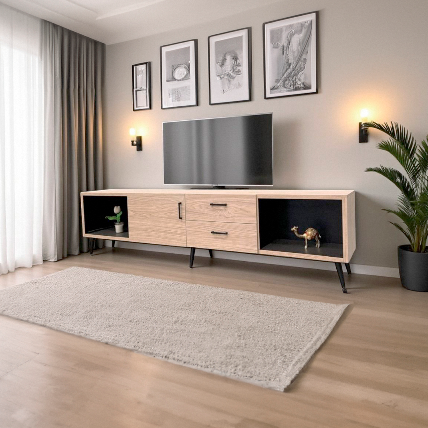 Fabricado en Madera y Melamina. Con acabado en color Maple. Medidas: 200 x 50 x 30 cm. NOTA: Los accesorios y otros muebles de las fotografías, se venden por separado. Por efectos de iluminación de la fotografía, algunos tonos de colores pueden variar con respecto al color real.