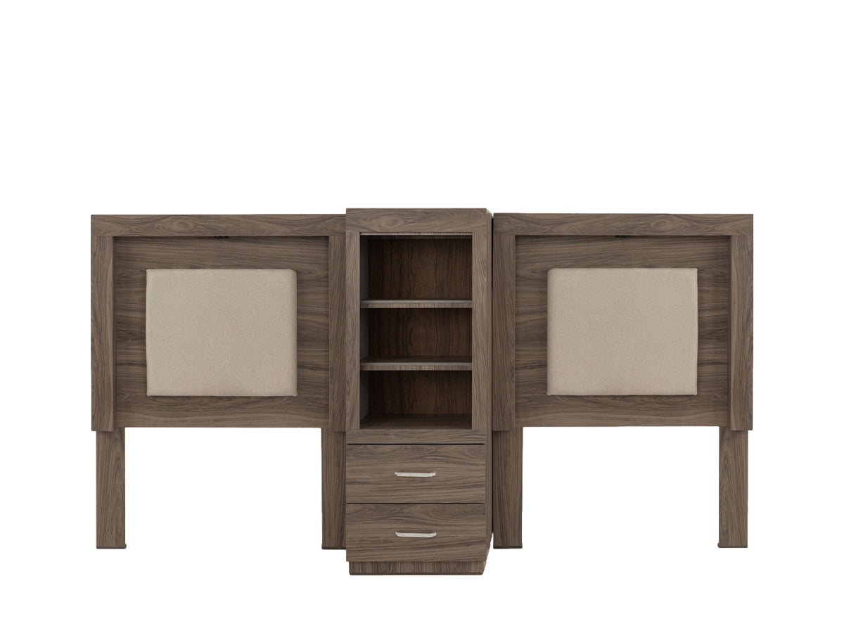 Descripción: Transforma tu recámara con este conjunto de dos camas individuales separadas por un práctico buró organizador alto con cajones. Ideal para compartir habitación sin perder independencia, cada cama cuenta con cabecera con luz integrada, aportando calidez y funcionalidad al espacio. El buró central ofrece amplios compartimentos abiertos y cajones, perfectos para almacenar libros, decoraciones o accesorios, optimizando el orden y el aprovechamiento del espacio. Fabricado con materiales de alta calidad que garantizan durabilidad y resistencia. No incluye colchones. La opción perfecta para crear un ambiente moderno, organizado y acogedor.. BASE Y COLCHON NO INCLUIDOS. |