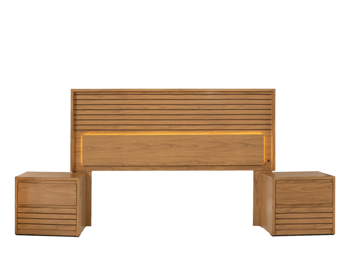 Descripción: Transforma tu dormitorio con este set que incluye una cabecera con luz integrada y dos burós, fusionando estética y funcionalidad en un solo conjunto. La cabecera, diseñada para camas tamaño King Size, redefine el descanso con su iluminación ambiental, estilo y acabados de alta calidad, aportando calidez y sofisticación a tu espacio. Los burós ofrecen almacenamiento eficiente y un diseño versátil que complementa perfectamente cualquier habitación. Fabricados con materiales duraderos y un estilo atemporal, se entregan completamente armados para un uso inmediato. Eleva tu hogar con un conjunto pensado para brindar distinción, orden y confort.. BASE Y COLCHON NO INCLUIDOS. |