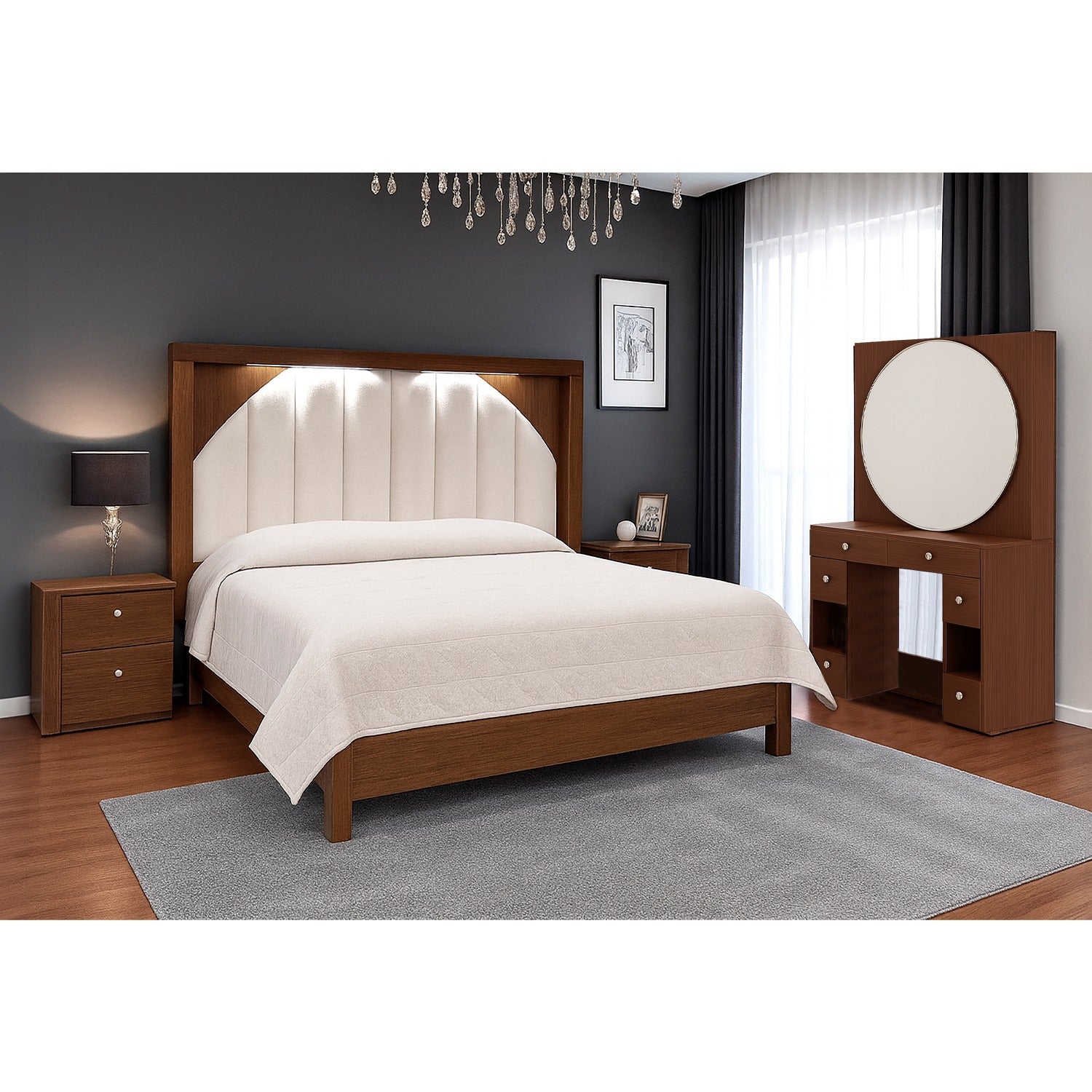 Descripción: Fabricado en Madera y Melamina. Con acabado en color Nogal. Medidas: 200 x 172 x 9 cm. Cabecera 200 x 172 x 9 Buro 60 x 62 x 36 Maquillador 100 x 175 x 37. No incluye base, colchon y taburete. NOTA: Los accesorios y otros muebles de las fotografías, se venden por separado. Por efectos de iluminación de la fotografía, algunos tonos de colores pueden variar con respecto al color real. |