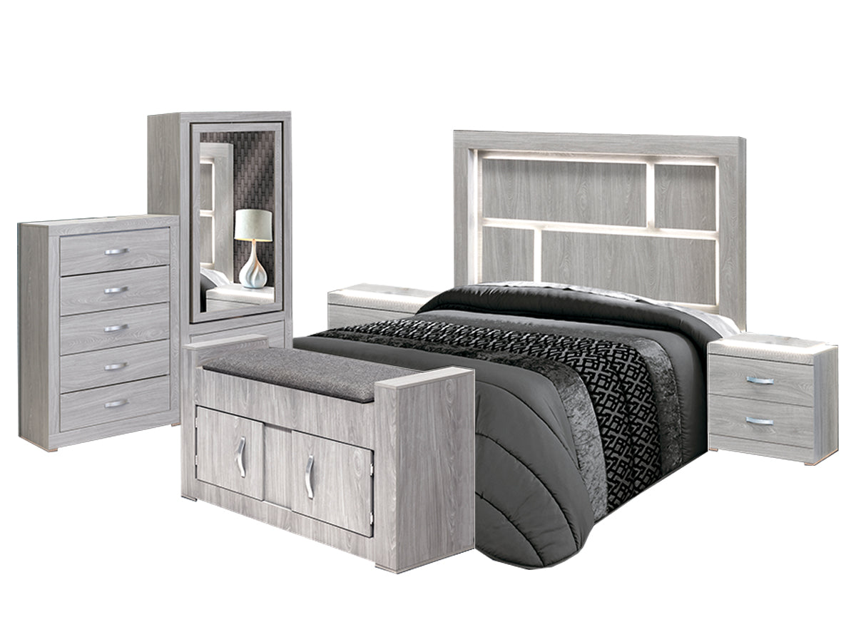 Descripción: Fabricado en Madera y Melamina. Con acabado en color Gris. Medidas: 200 x 182 x 11 cm. Cabecera 200 x 182 x 11 Buro 60 x 65 x 40 Cajonera 80 x 121 x 40 Espejo Giratorio 80 x 180 x 40 Baul 120 x 63 x 37. No incluye base ni colchon. NOTA: Los accesorios y otros muebles de las fotografías, se venden por separado. Por efectos de iluminación de la fotografía, algunos tonos de colores pueden variar con respecto al color real. |