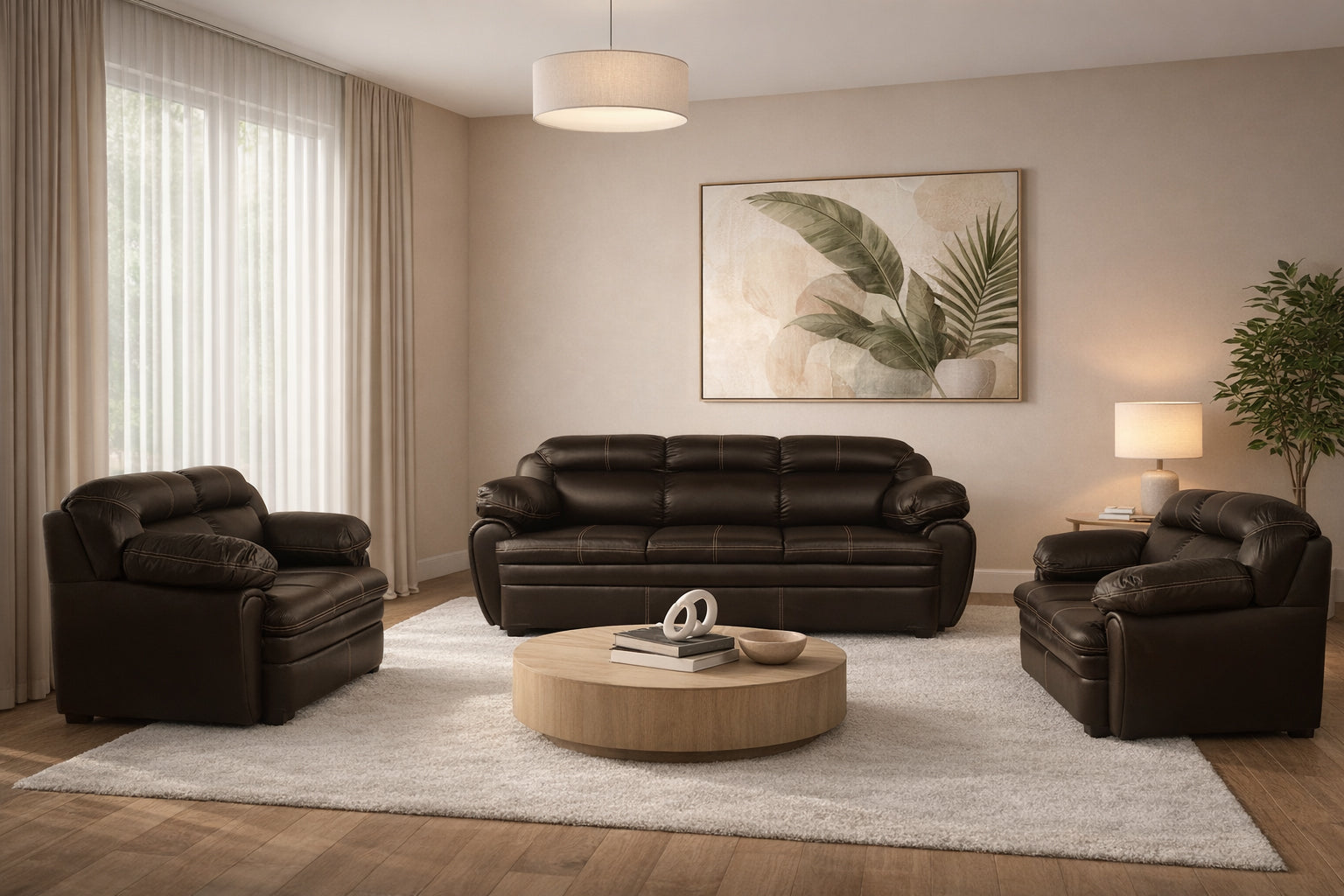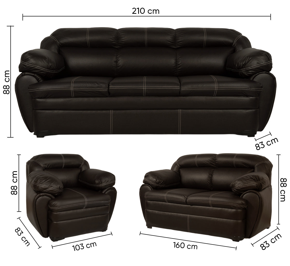 Descripción: Sala . Fabricada en madera de pino en el interior, tapizada en vinipiel color chocolate. Compuesta por 1 Sofa, 1 Love Seat y 1 Sillón. medidas: 221 x 96 x 87. Los accesorios y otros muebles de las fotografías, se venden por separado. Por efectos de iluminación de la fotografía, algunos tonos de colores pueden variar con respecto al color real. |