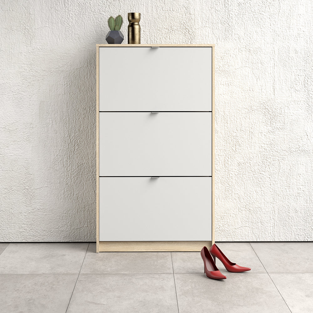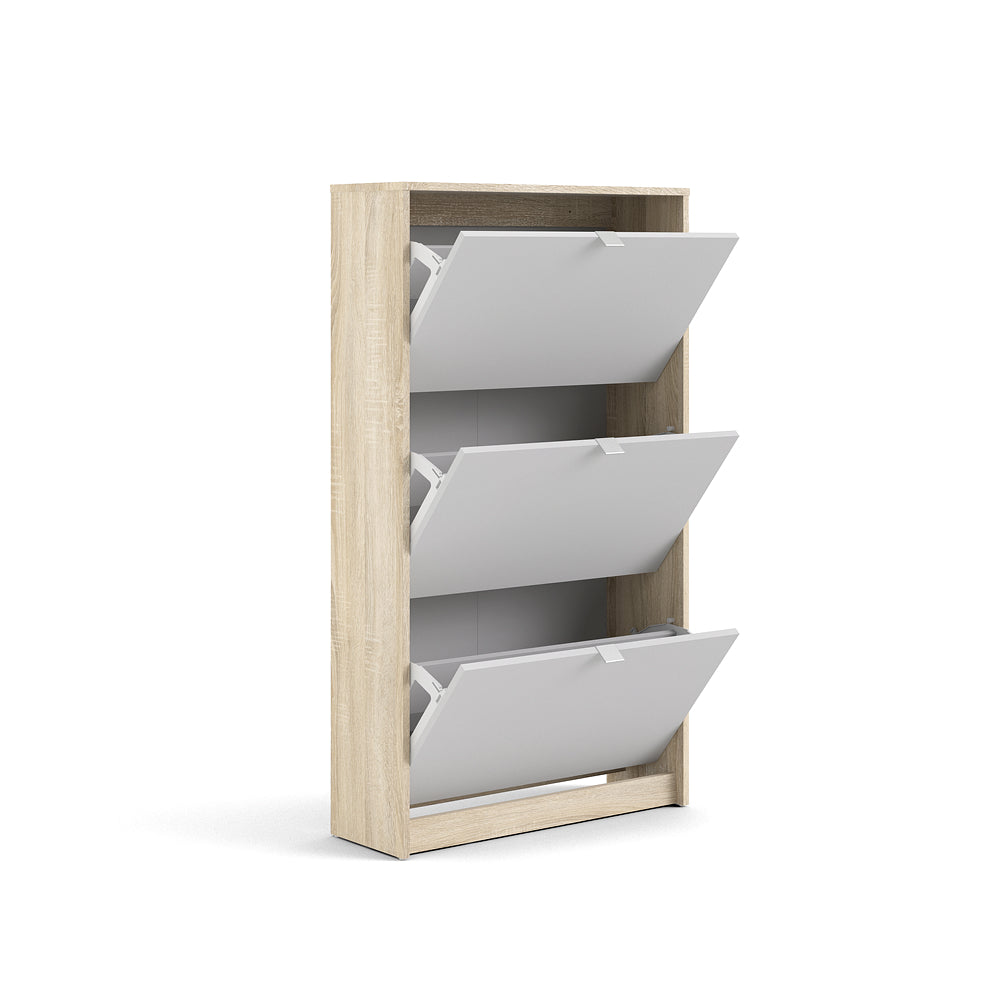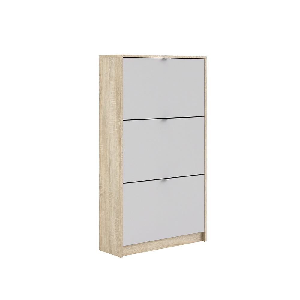 Descripción: Zapatera fabricado en Madera industrializada. Con acabado en color Blanco y roble sonoma. Medidas: 70 x 24 x 124. Zapatera con 3 compartimentos. NOTA: Los accesorios y otros muebles de las fotografías, se venden por separado. Por efectos de iluminación de la fotografía, algunos tonos de colores pueden variar con respecto al color real. |