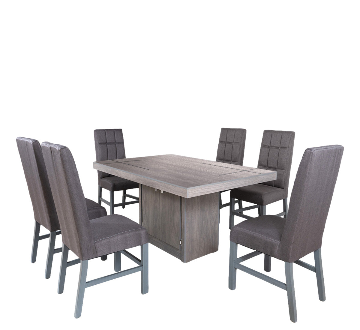 • Incluye 6 sillas tapizadas en tela color gris
