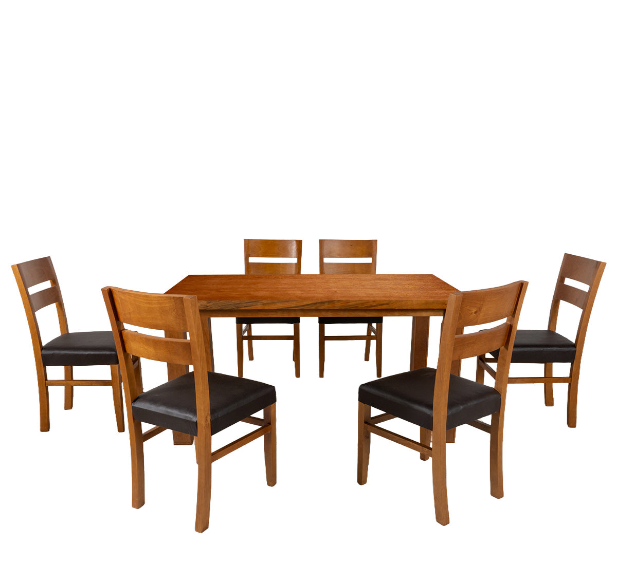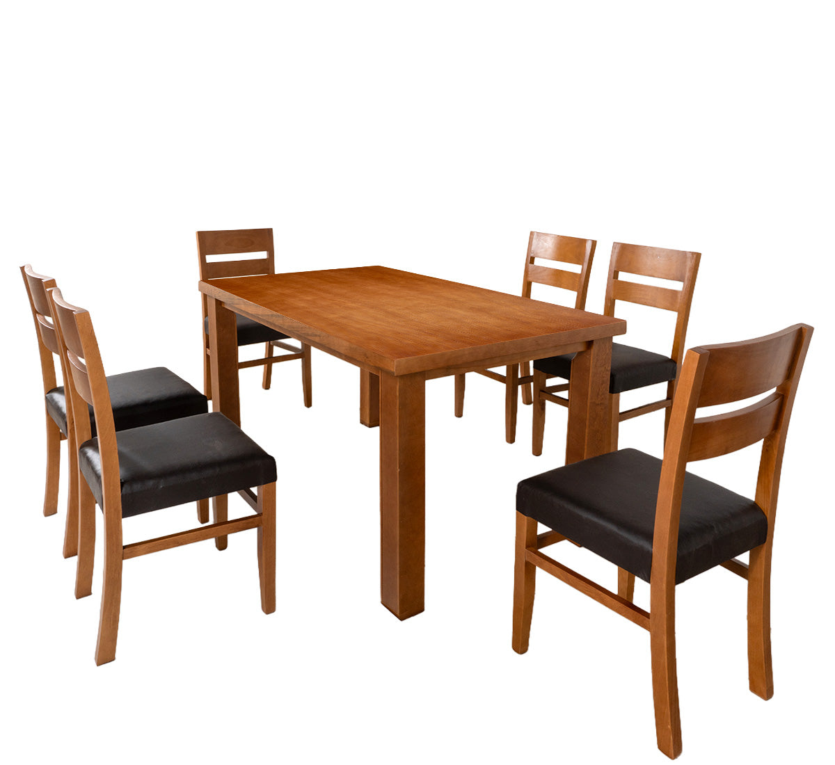 Descripción: Hermoso comedor de 6 sillas. Fabricado en madera estufada y tratada contra plagas y tablero industrializado de madera con acabado semi brillante color nogal. Sillas fabricadas en madera con mismo acabado, tapizadas en piel sintetica color chocolate. Incluye 6 sillas. Medidas: 150 x 90 x 76. NOTA: El buffete se vende por separado. Los accesorios y otros muebles de las fotografías, se venden por separado. Por efectos de iluminación de la fotografía, algunos tonos de colores pueden variar con respecto al color real. |