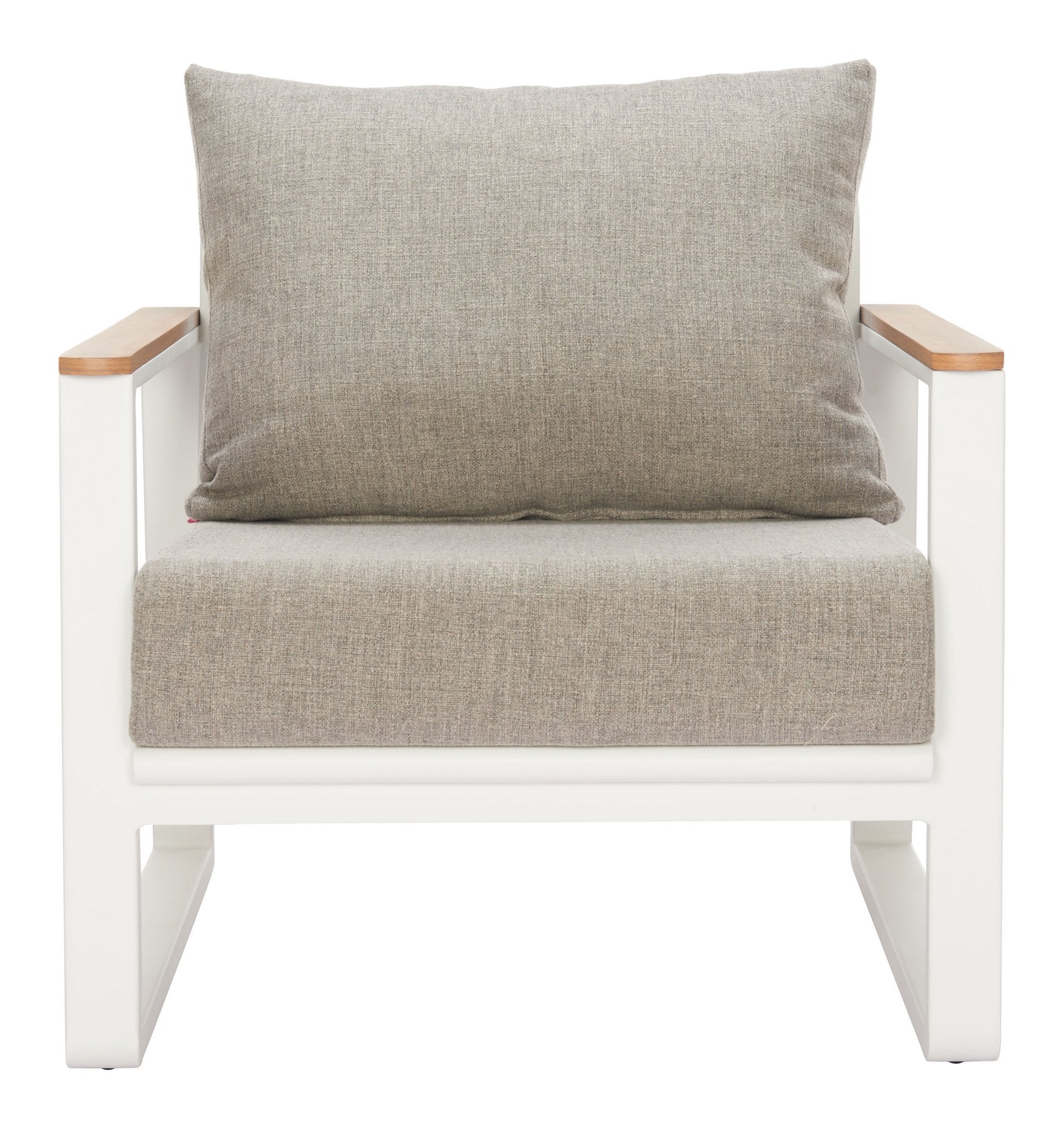 Fabricado en Aluminio. Con acabado en color Blanco. Medidas: 77 x 79 x 83 cm. Realce su espacio exterior con el Sillón Welt en color Taupe y Blanco, una impresionante muestra de diseño moderno. Fabricado con olefina resistente y aluminio, este sillón combina a la perfección estilo y funcionalidad, lo que lo convierte en la opción ideal para patios, terrazas o jardines. Su diseño elegante y contemporáneo lo hace destacar y complementar a la perfección cualquier espacio exterior.. NOTA: Los accesorios y otros muebles de las fotografías, se venden por separado. Por efectos de iluminación de la fotografía, algunos tonos de colores pueden variar con respecto al color real.
