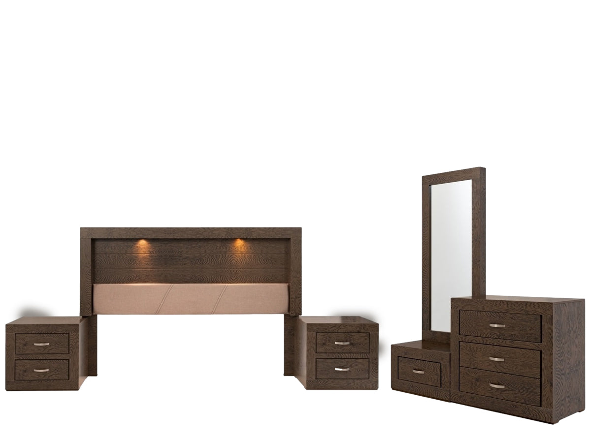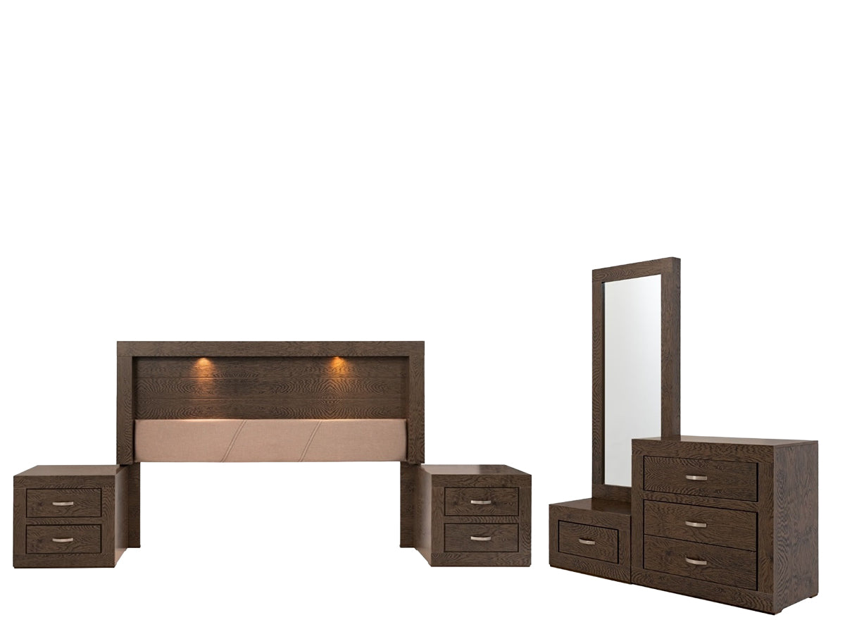 Descripción: Hermosa recamara de tamaño King Size. Fabricada en madera de pino estufada y tratada contra plagas y tablero industrializado de madera de pino con acabado semi brillante color capuchino. Incluye: Cabecera, Buros, tocador y portaluna. NOTA: NO INCLUYE BASE NI COLCHON. Los accesorios y otros muebles de las fotografías, se venden por separado. Por efectos de iluminación de la fotografía, algunos tonos de colores pueden variar con respecto al color real. |