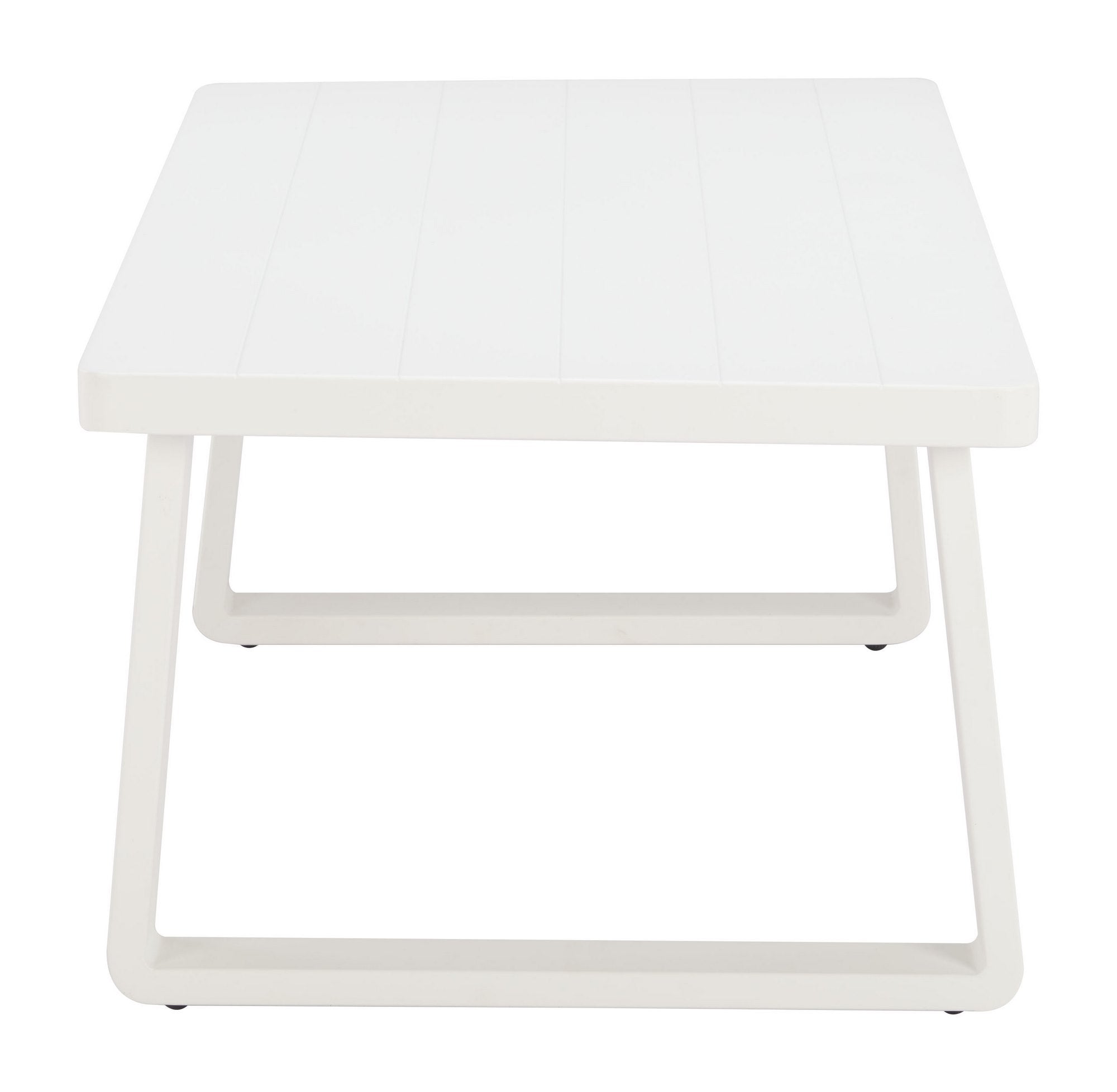 Fabricado en Aluminio. Con acabado en color Blanco. Medidas: 108 x 45 x 60 cm. Realza tu espacio exterior con la mesa de centro Welt blanca, un ejemplo excepcional de diseño moderno. Fabricada en aluminio de alta calidad, esta mesa combina a la perfección estilo y funcionalidad, convirtiéndola en un complemento ideal para patios, balcones o jardines. Su diseño elegante y contemporáneo la hace destacar y realza la belleza de cualquier espacio exterior.. NOTA: Los accesorios y otros muebles de las fotografías, se venden por separado. Por efectos de iluminación de la fotografía, algunos tonos de colores pueden variar con respecto al color real.