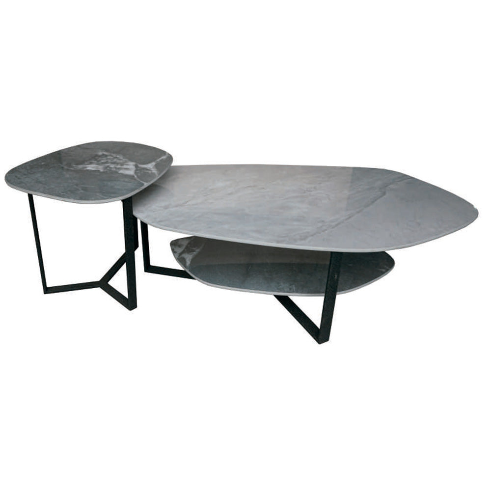 Fabricado en Acero Inoxidable/Marmol Imitacion. Con acabado en color Gris. Medidas: 127 x 37 x 70 cm. Set de 2 mesas. Medidas Mesa Chica 45 x 45 x 55. NOTA: Los accesorios y otros muebles de las fotografías, se venden por separado. Por efectos de iluminación de la fotografía, algunos tonos de colores pueden variar con respecto al color real.