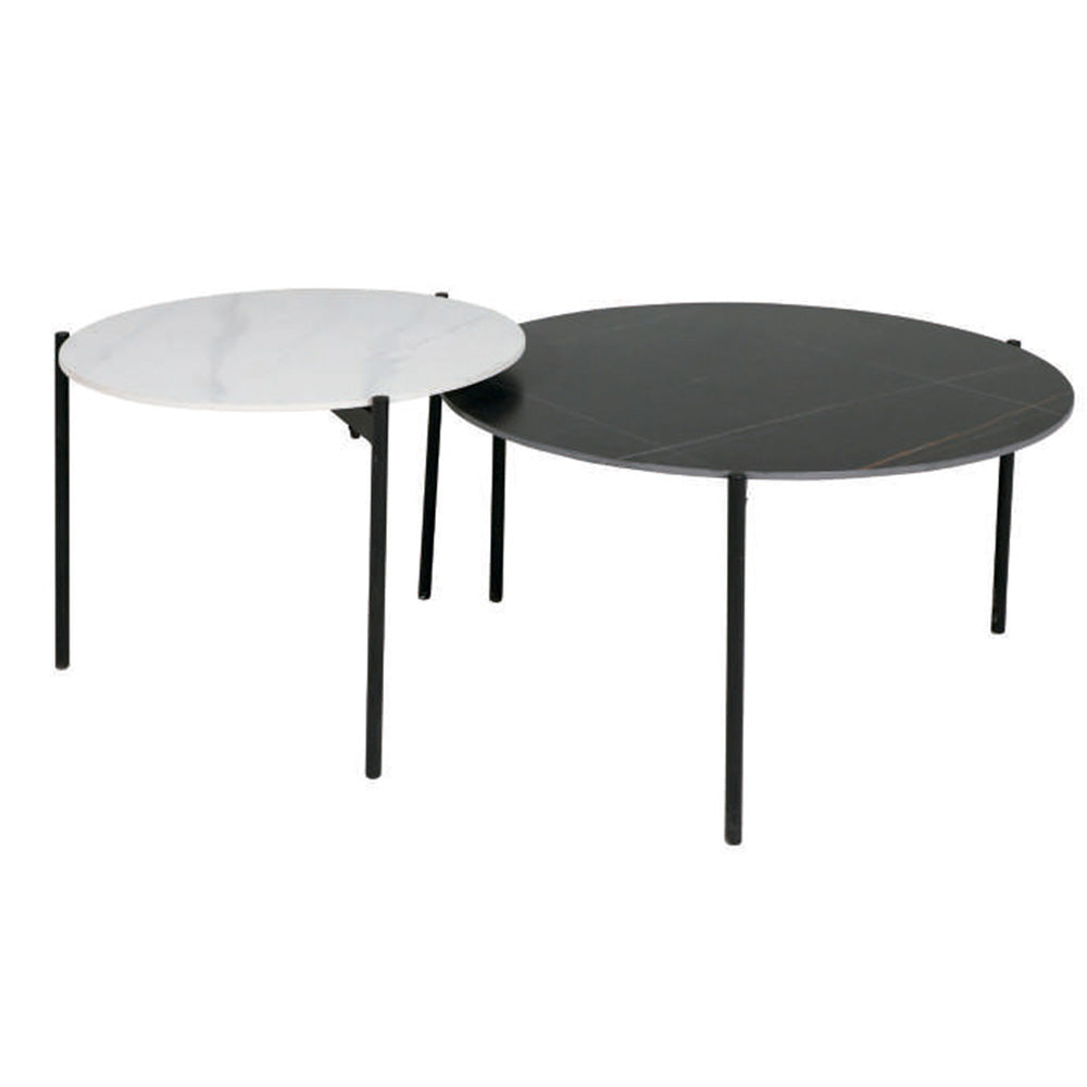 Fabricado en Acero Inoxidable/Marmol Imitacion. Con acabado en color Negro. Medidas: 80 x 45 x 80 cm. Set de 2 mesas. Medidas Mesa Chica 60 x 42 x 60. NOTA: Los accesorios y otros muebles de las fotografías, se venden por separado. Por efectos de iluminación de la fotografía, algunos tonos de colores pueden variar con respecto al color real.