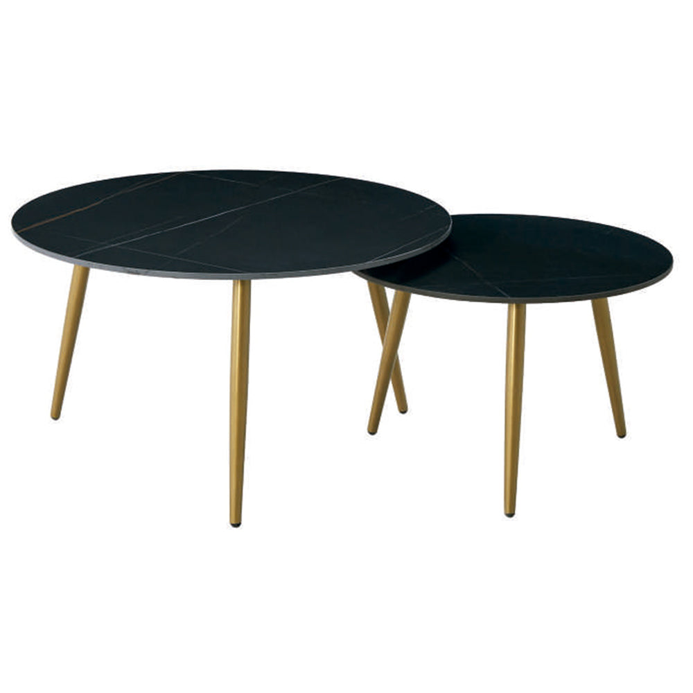 Fabricado en Acero Inoxidable/Marmol Imitacion. Con acabado en color Negro. Medidas: 80 x 45 x 80 cm. Set de 2 mesas. Medidas Mesa Chica 60 x 42 x 60. NOTA: Los accesorios y otros muebles de las fotografías, se venden por separado. Por efectos de iluminación de la fotografía, algunos tonos de colores pueden variar con respecto al color real.