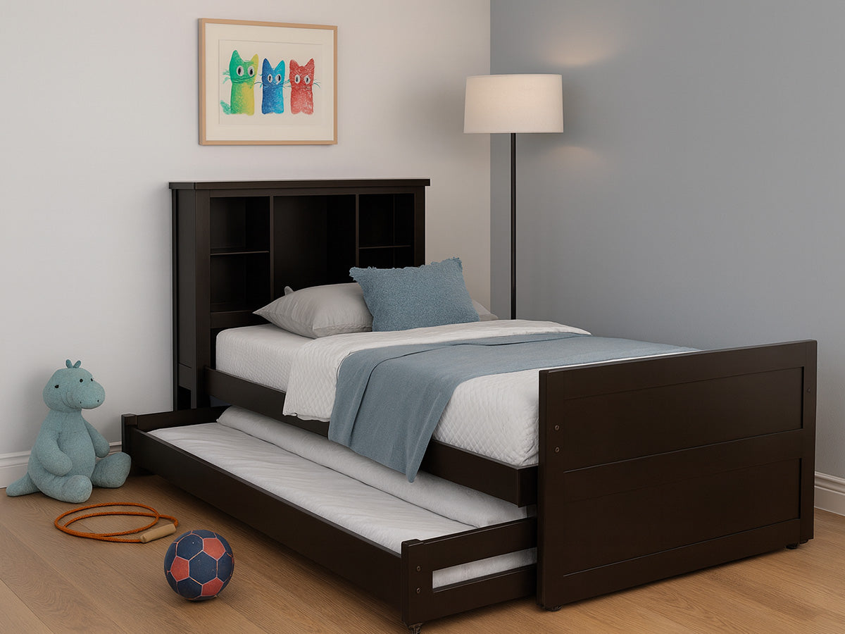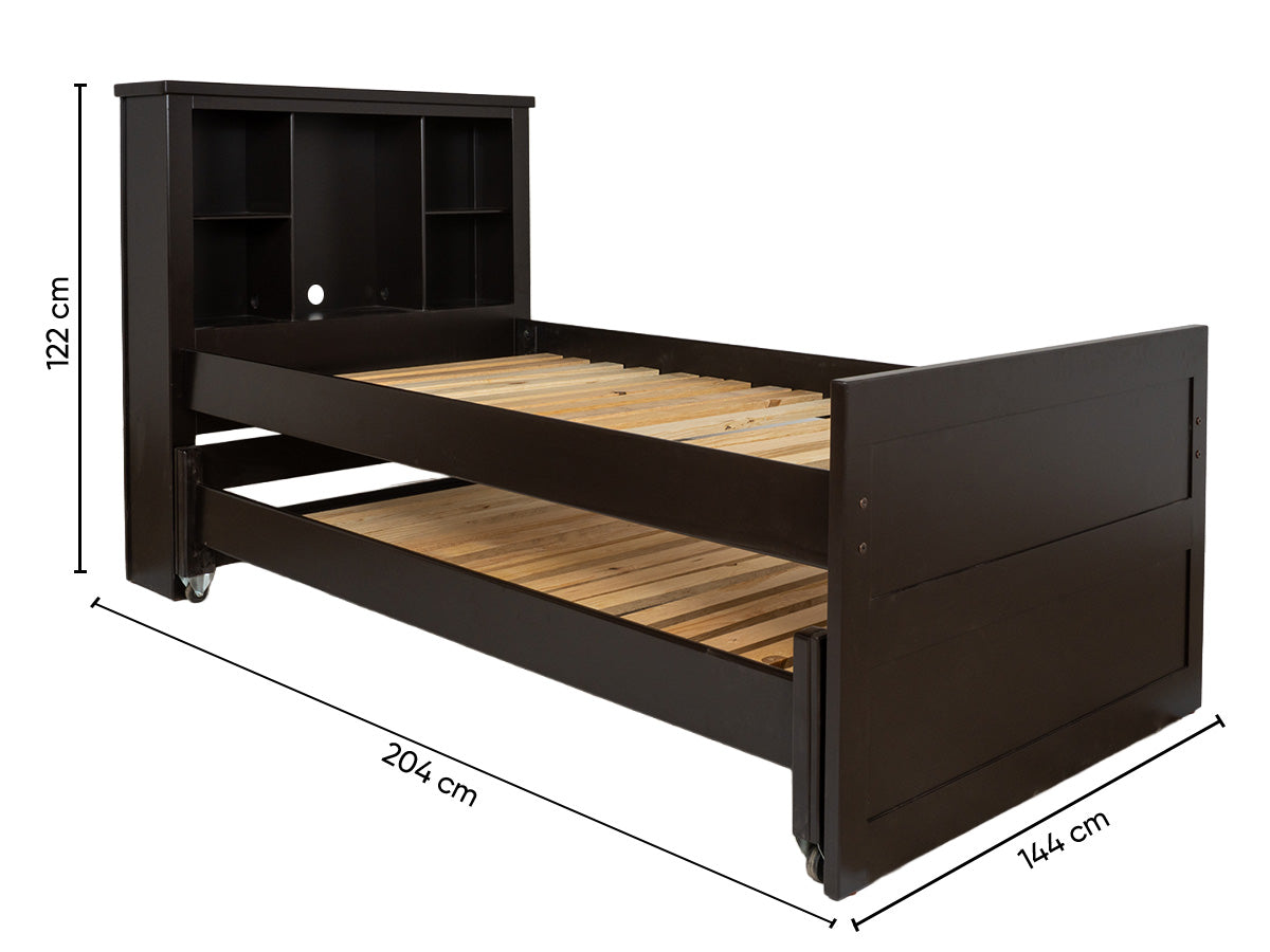 Descripción: Hermosa recamara juvenil de tamaño individual. Fabricada en madera de pino estufada y tratada contra plagas y tablero industrializado de madera de pino con acabado semi brillante color chocolate. Incluye cama baja con ruedas. NOTA: NO INCLUYE COLCHONES. Los accesorios y otros muebles de las fotografías, se venden por separado. Por efectos de iluminación de la fotografía, algunos tonos de colores pueden variar con respecto al color real. |
