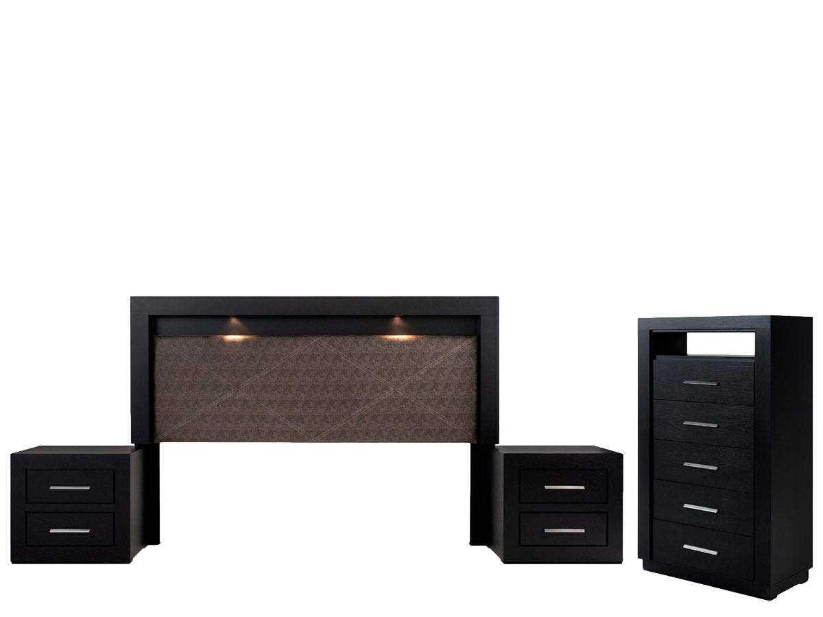 Descripción: Descubre la fusión perfecta entre elegancia y diseño con este set de recámara completa, que incluye: una cabecera con luz integrada, ideal para un colchón tamaño king; dos burós, cuyo diseño versátil y almacenamiento eficiente mantiene la armonía y el orden; y una amplia cómoda cajonera, para mantener todo organizado. Su diseño elegante y funcional aporta estilo y sofisticación al ambiente. Todos los productos fueron fabricados con materiales duraderos y un diseño atemporal. Se entregan completamente armados para su uso inmediato. Un conjunto perfecto para transformar tu dormitorio en un refugio con estilo y confort.. BASE Y COLCHON NO INCLUIDOS. |