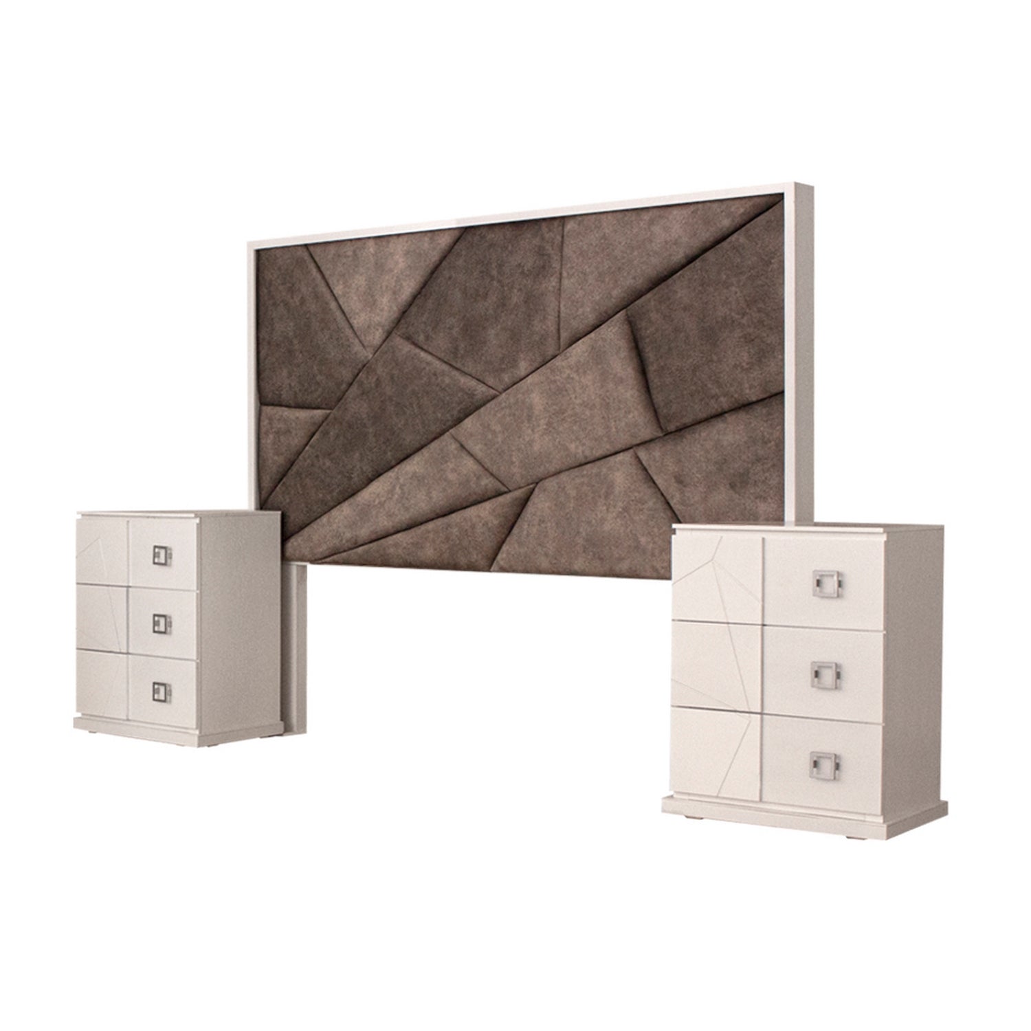 Descripción: Descubre la fusión perfecta entre elegancia y diseño con este set de recámara completa, que incluye: una cabecera, ideal para un colchón tamaño king; dos burós, cuyo diseño versátil y almacenamiento eficiente mantiene la armonía y el orden; y una amplia cómoda cajonera, para mantener todo organizado. Su diseño elegante y funcional aporta estilo y sofisticación al ambiente. Todos los productos fueron fabricados con materiales duraderos y un diseño atemporal. Se entregan completamente armados para su uso inmediato. Un conjunto perfecto para transformar tu dormitorio en un refugio con estilo y confort.. BASE Y COLCHON NO INCLUIDOS. |