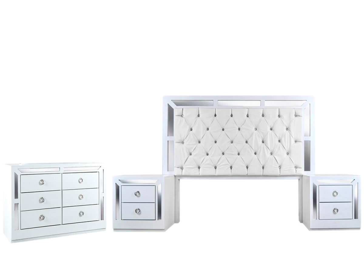 Recamara KS 4 Piezas Emilia Sin Espejo - Blanco y Plata