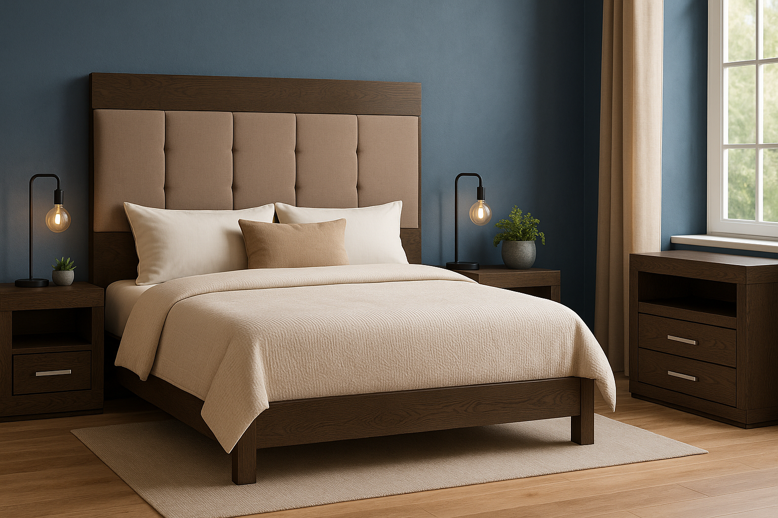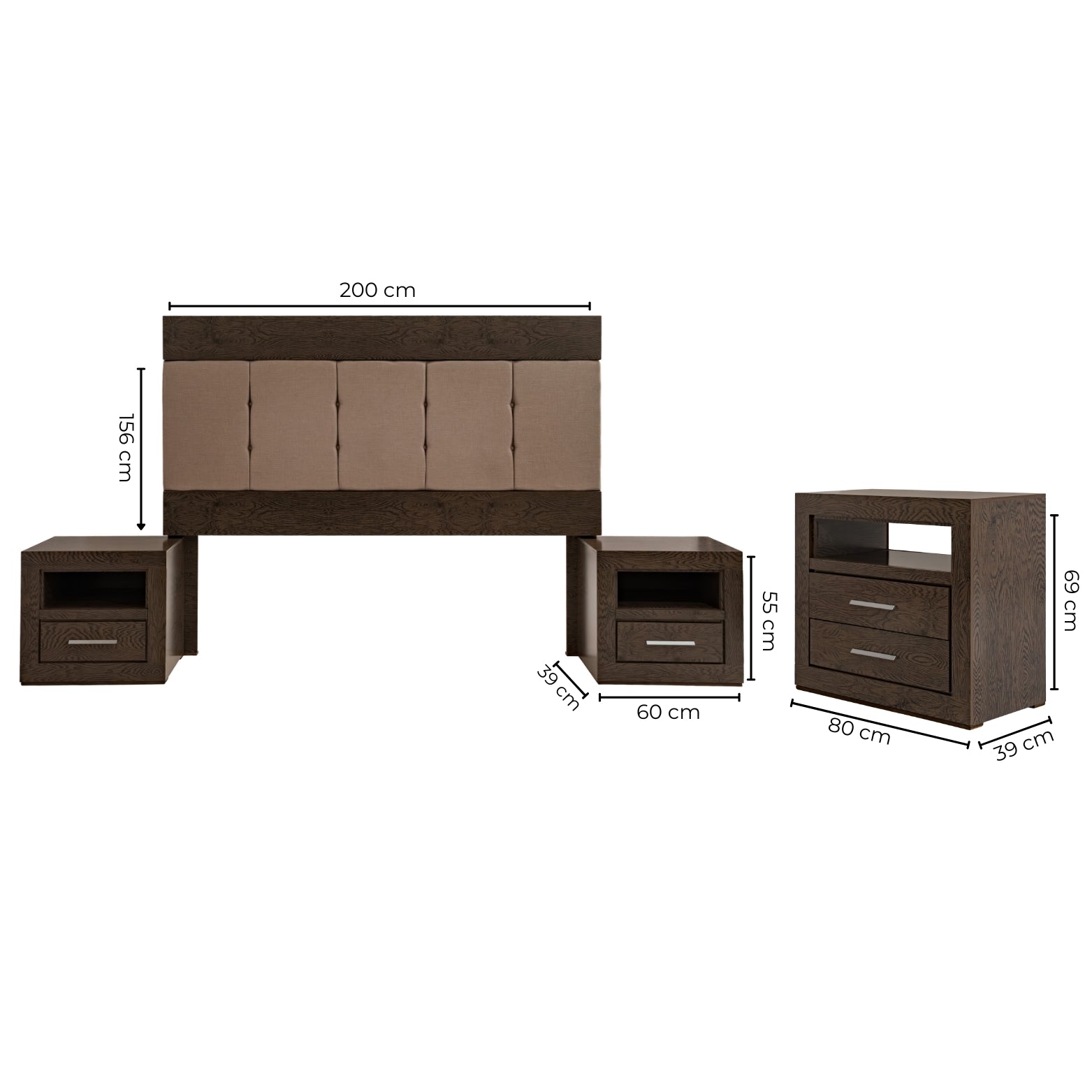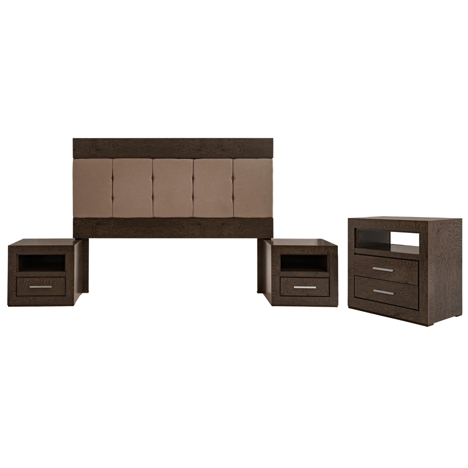 Descripción: Descubre la fusión perfecta entre elegancia y diseño con este set de recámara completa, que incluye: una cabecera, ideal para un colchón tamaño king; dos burós, cuyo diseño versátil y almacenamiento eficiente mantiene la armonía y el orden; y una amplia cómoda cajonera, para mantener todo organizado. Su diseño elegante y funcional aporta estilo y sofisticación al ambiente. Todos los productos fueron fabricados con materiales duraderos y un diseño atemporal. Se entregan completamente armados para su uso inmediato. Un conjunto perfecto para transformar tu dormitorio en un refugio con estilo y confort. No incluye base para cama ni colchón. |