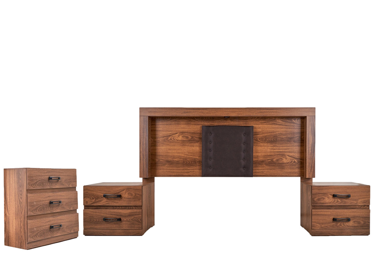 Descubre la fusión perfecta entre elegancia y diseño con este set de recámara completa, que incluye: una cabecera con luz integrada, ideal para un colchón tamaño king; dos burós, cuyo diseño versátil y almacenamiento eficiente mantiene la armonía y el orden; y una amplia cómoda cajonera, para mantener todo organizado. Su diseño elegante y funcional aporta estilo y sofisticación al ambiente. Todos los productos fueron fabricados con materiales duraderos y un diseño atemporal. Se entregan completamente armados para su uso inmediato. Un conjunto perfecto para transformar tu dormitorio en un refugio con estilo y confort.. BASE Y COLCHON NO INCLUIDOS.