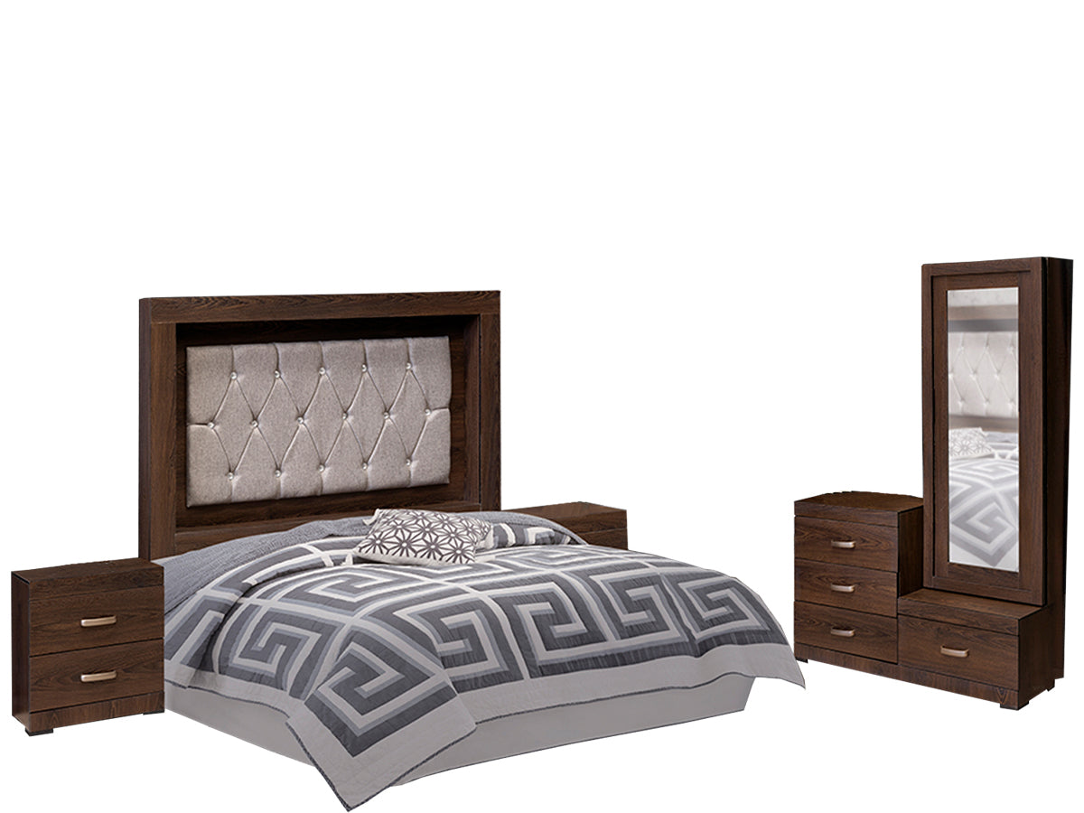 Descripción: Fabricado en Madera y Melamina. Con acabado en color Nogal. Medidas: 200 x 162 x 15 cm. Cabecera 200 x 162 x 15 Buro 50 x 56 x 31 Tocador 120 x 75 x 31 Espejo 60 x 145 x 15. No incluye base ni colchon. NOTA: Los accesorios y otros muebles de las fotografías, se venden por separado. Por efectos de iluminación de la fotografía, algunos tonos de colores pueden variar con respecto al color real. |