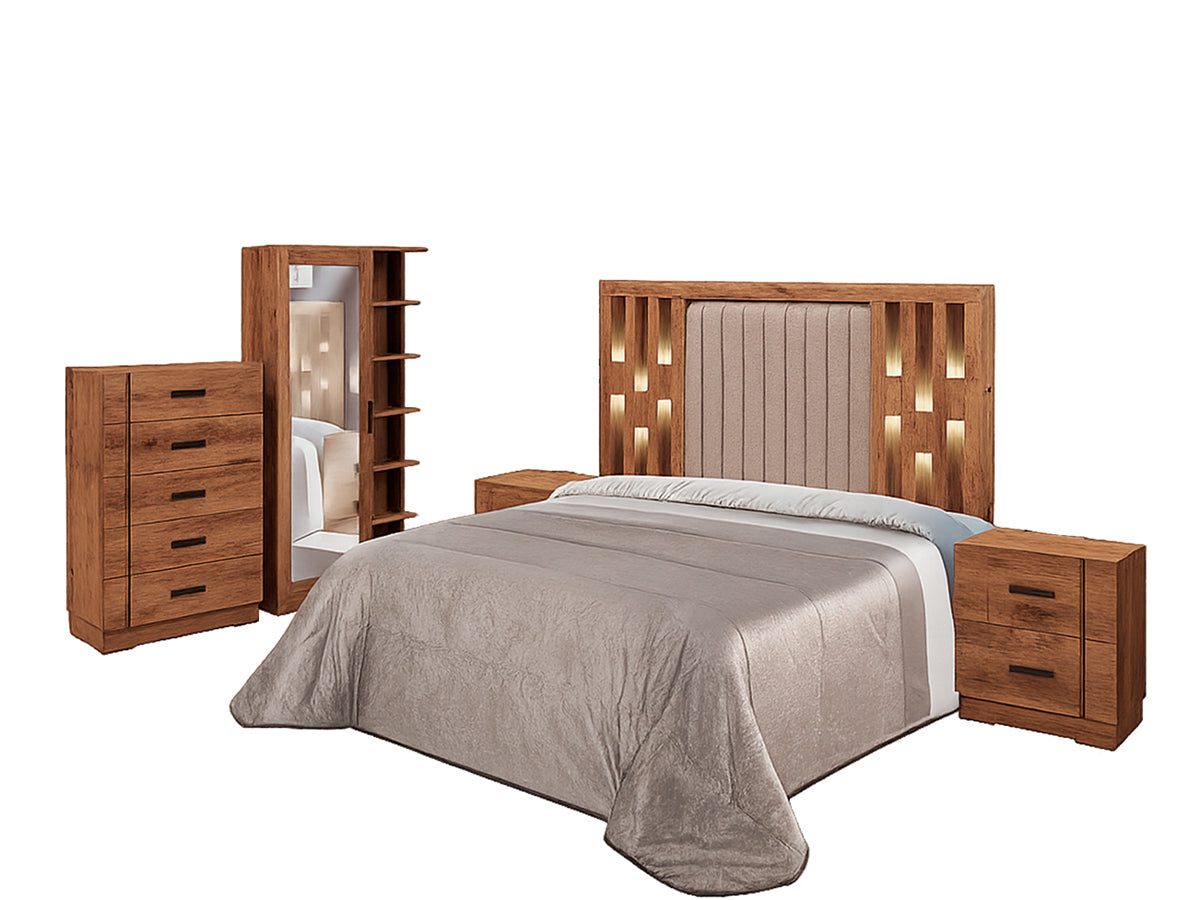 Descripción: Fabricado en Madera y Melamina. Con acabado en color Roble. Medidas: 200 x 170 x 10 cm. Cabecera 200 x 170 x 10 Buro 60 x 70 x 35 Cajonera 80 x 120 x 35 Espejo 100 x 180 x 30. No incluye base ni colchon. NOTA: Los accesorios y otros muebles de las fotografías, se venden por separado. Por efectos de iluminación de la fotografía, algunos tonos de colores pueden variar con respecto al color real. |