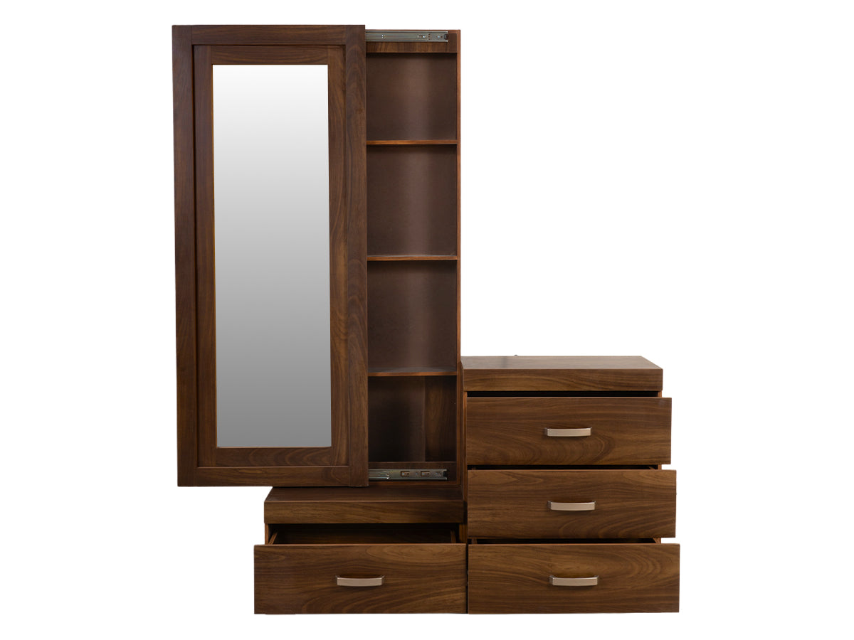 Descripción: Fabricado en Madera/Melamina. Con acabado en color Nogal. Medidas: 155 x 135 x 6 cm. Medida Buro 50 x 53 x 30 Tocador 120 x 75 x 35 Espejo 60 x 145 x 15. No Incluye Base, colchon, ni accesorios. NOTA: Los accesorios y otros muebles de las fotografías, se venden por separado. Por efectos de iluminación de la fotografía, algunos tonos de colores pueden variar con respecto al color real. |