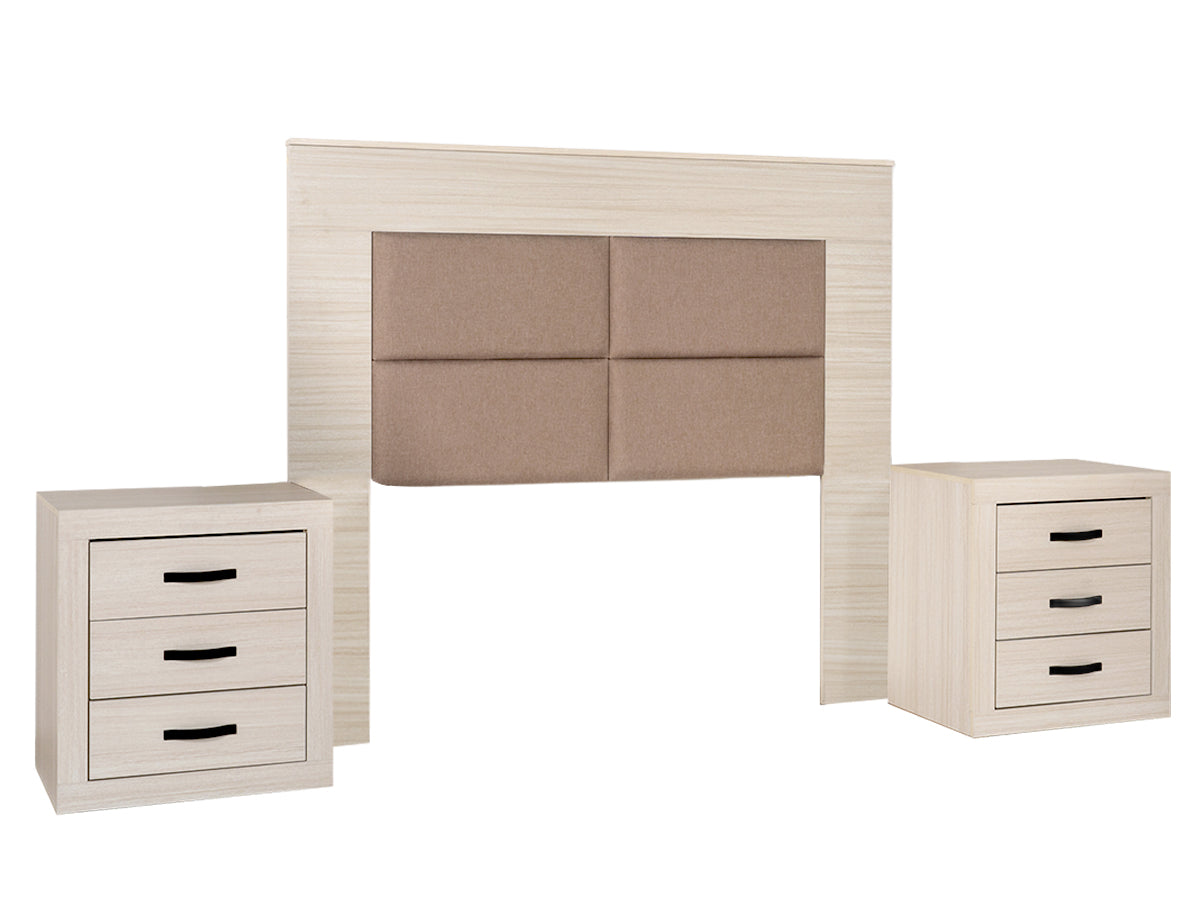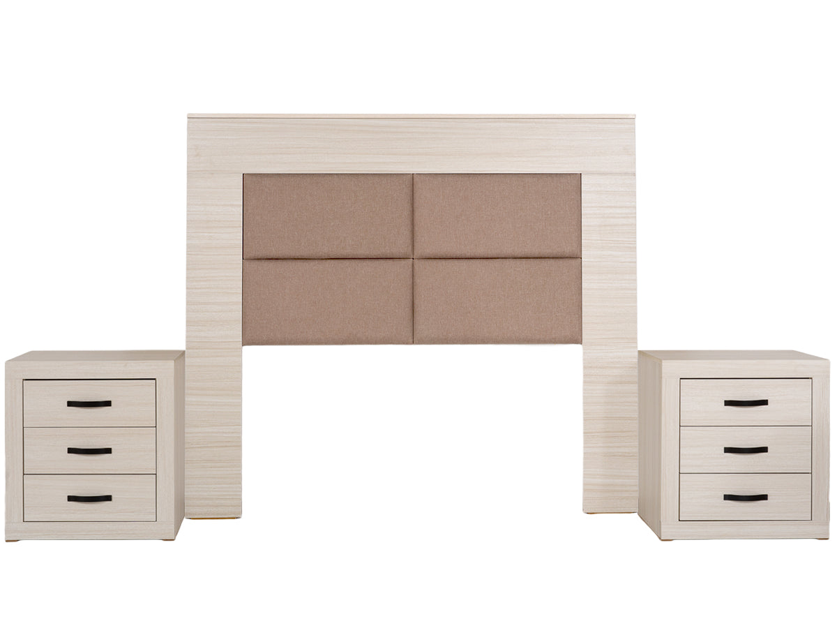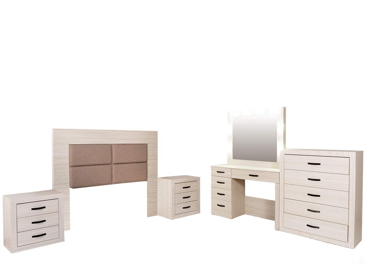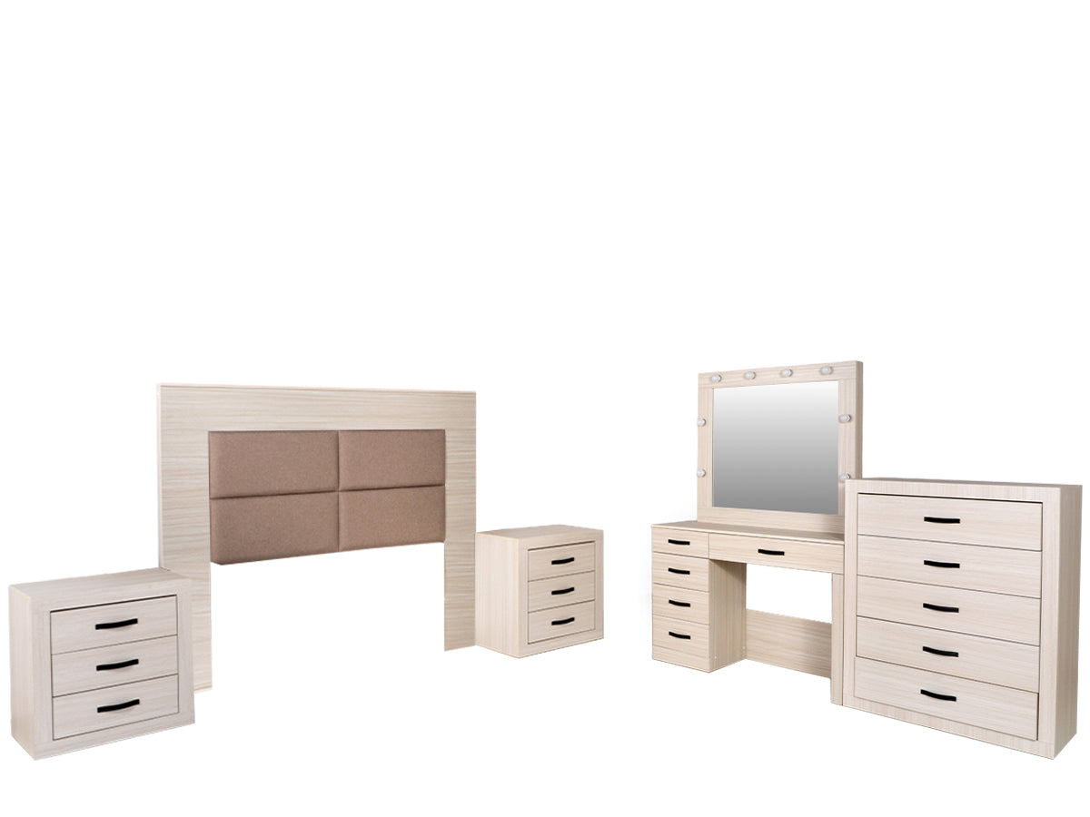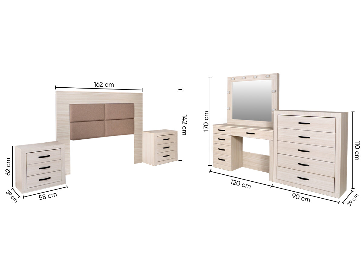 Descripción: Fabricado en Madera y Melamina. Con acabado en color Blanco. Medidas: 162 x 142 x 5 cm. Cabecera 162 x 142 x 5 Buro 58 x 62 x 39 Cajonera 90 x 110 x 39 Maquillador 120 x 170 x 39. No incluye base ni colchon. NOTA: Los accesorios y otros muebles de las fotografías, se venden por separado. Por efectos de iluminación de la fotografía, algunos tonos de colores pueden variar con respecto al color real. |