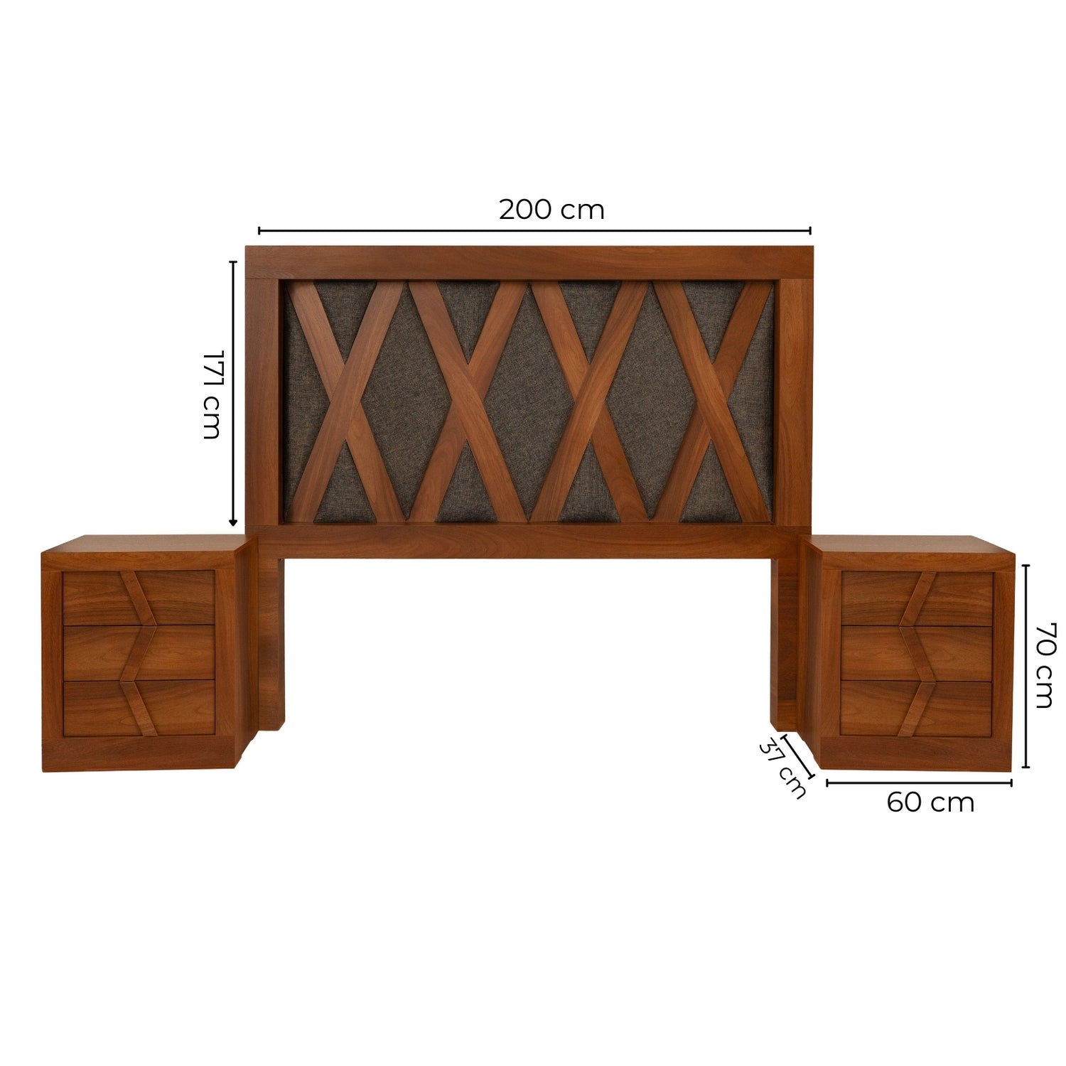 Descripción: Transforma tu dormitorio con este set que incluye una cabecera y dos burós, fusionando estética y funcionalidad en un solo conjunto. La cabecera, diseñada para camas tamaño King Size, redefine el descanso con su estilo y acabados de alta calidad, aportando calidez y sofisticación a tu espacio. Las mesas de noche ofrecen almacenamiento eficiente y un diseño versátil que complementa perfectamente cualquier habitación. Fabricados con materiales duraderos y un estilo atemporal, se entregan completamente armados para un uso inmediato. Eleva tu hogar con un conjunto pensado para brindar distinción, orden y confort.. BASE Y COLCHON NO INCLUIDOS. |