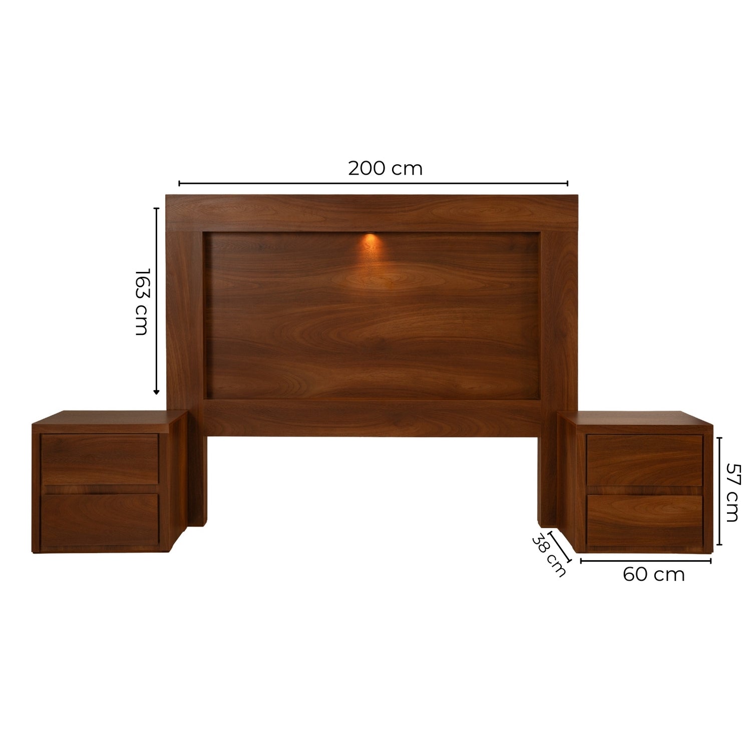 Descripción: Transforma tu dormitorio con este set que incluye una cabecera con luz integrada y dos burós, fusionando estética y funcionalidad en un solo conjunto. La cabecera, diseñada para camas tamaño King Size, redefine el descanso con su iluminación ambiental, estilo y acabados de alta calidad, aportando calidez y sofisticación a tu espacio. Los burós ofrecen almacenamiento eficiente y un diseño versátil que complementa perfectamente cualquier habitación. Fabricados con materiales duraderos y un estilo atemporal, se entregan completamente armados para un uso inmediato. Eleva tu hogar con un conjunto pensado para brindar distinción, orden y confort.. BASE Y COLCHON NO INCLUIDOS. |