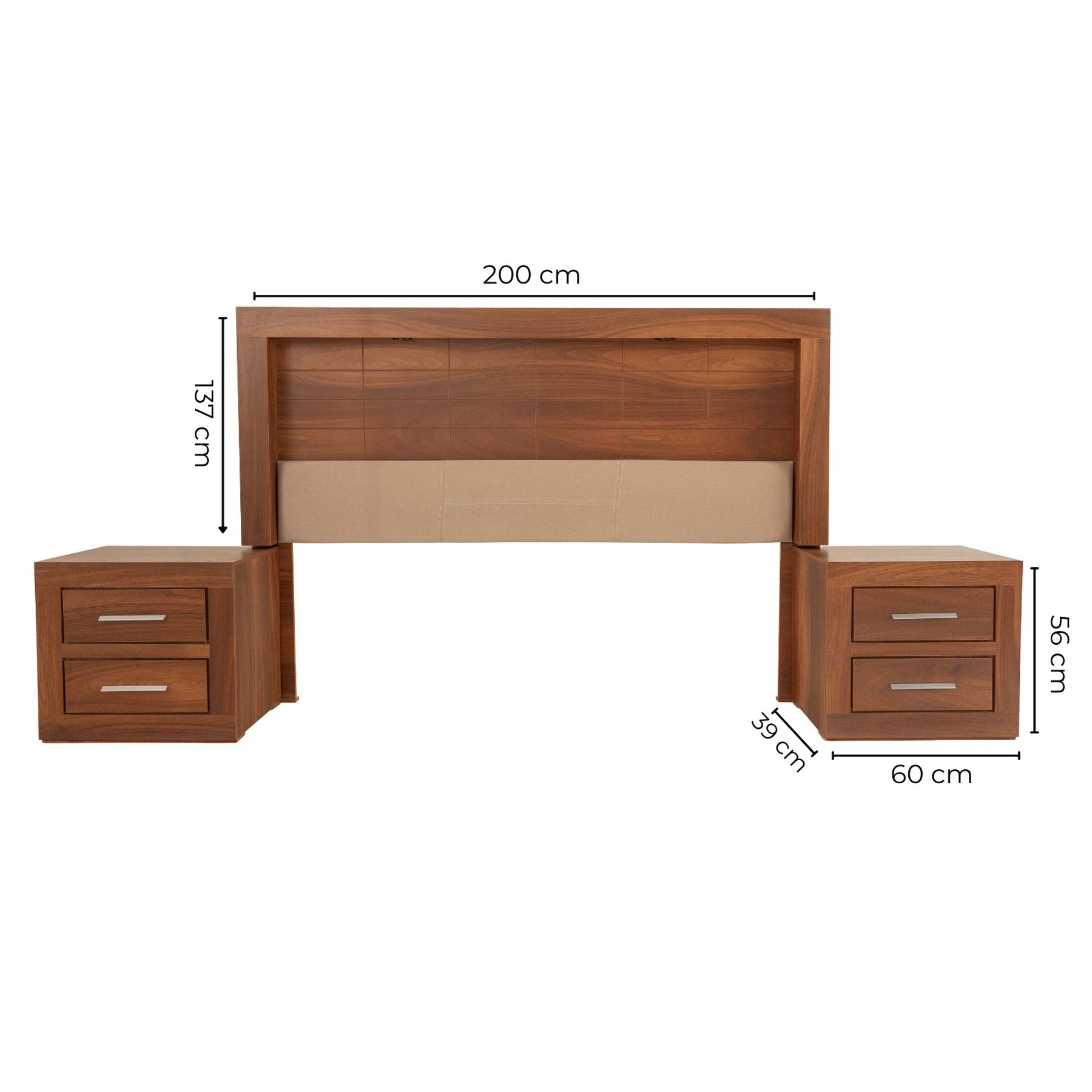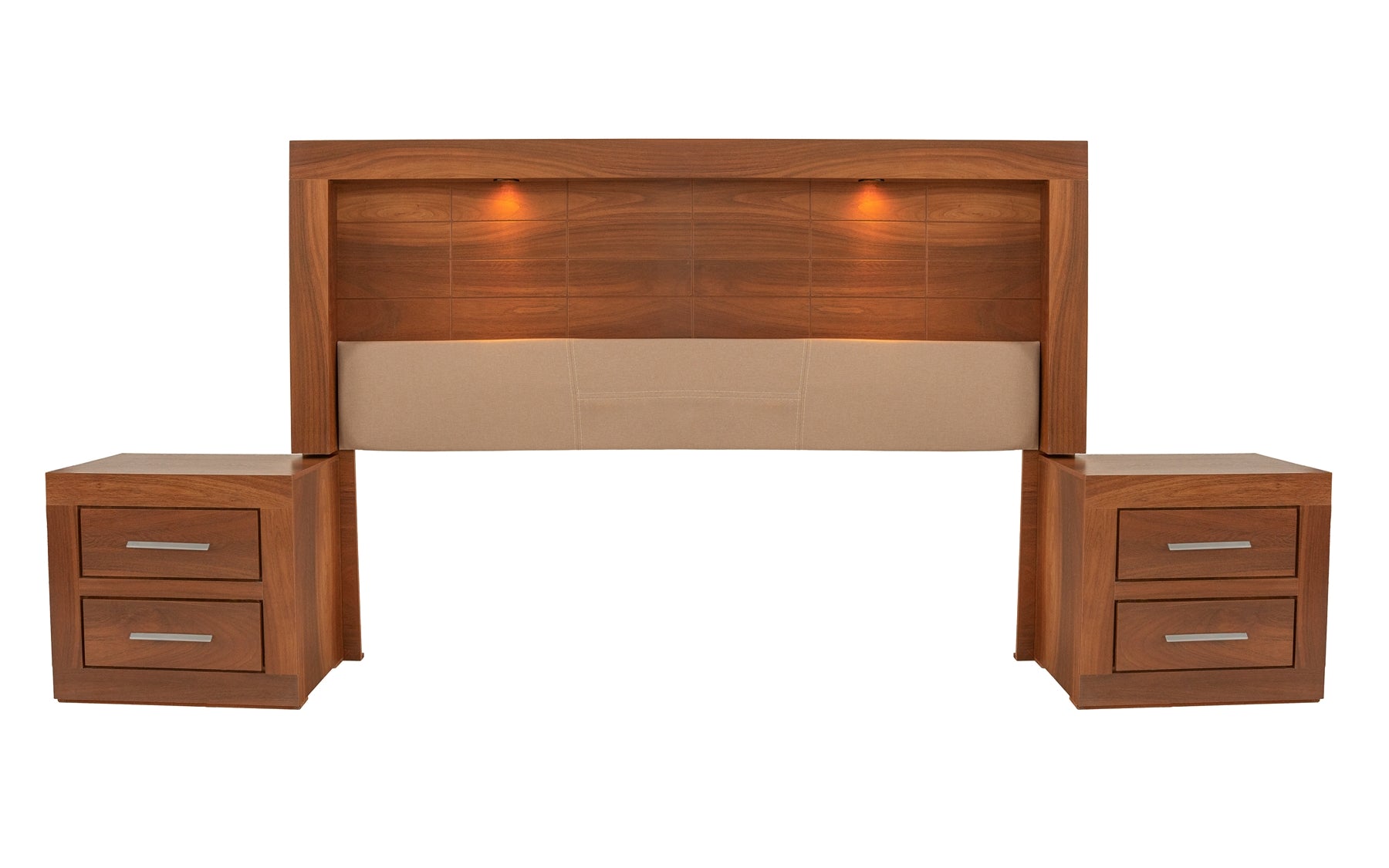 Descripción: Transforma tu dormitorio con este set que incluye una cabecera con luz integrada y dos burós, fusionando estética y funcionalidad en un solo conjunto. La cabecera, diseñada para camas tamaño King Size, redefine el descanso con su iluminación ambiental, estilo y acabados de alta calidad, aportando calidez y sofisticación a tu espacio. Los burós ofrecen almacenamiento eficiente y un diseño versátil que complementa perfectamente cualquier habitación. Fabricados con materiales duraderos y un estilo atemporal, se entregan completamente armados para un uso inmediato. Eleva tu hogar con un conjunto pensado para brindar distinción, orden y confort.. BASE Y COLCHON NO INCLUIDOS. |