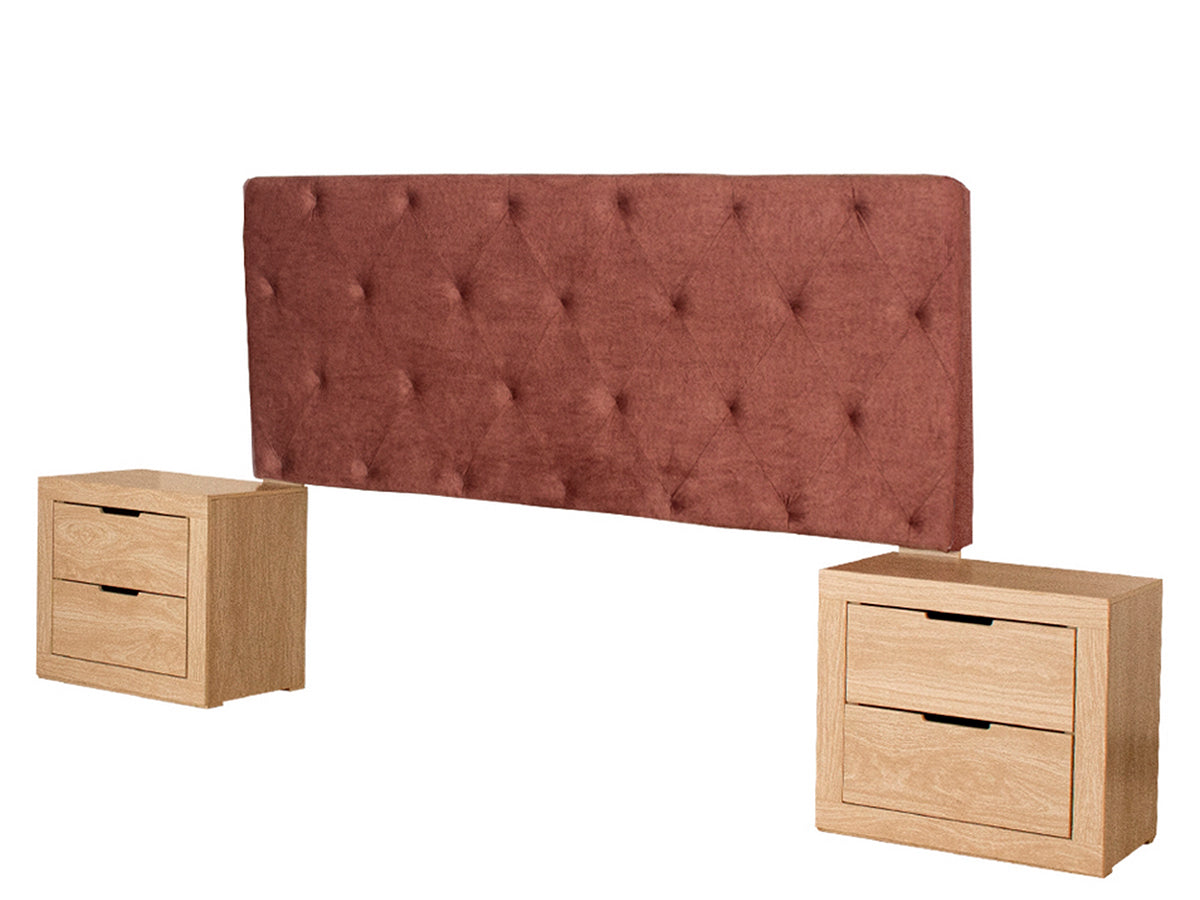 Descripción: Transforma tu dormitorio con este set que incluye una cabecera y dos burós, fusionando estética y funcionalidad en un solo conjunto. La cabecera, diseñada para camas tamaño King Size, redefine el descanso con su estilo y acabados de alta calidad, aportando calidez y sofisticación a tu espacio. Las mesas de noche ofrecen almacenamiento eficiente y un diseño versátil que complementa perfectamente cualquier habitación. Fabricados con materiales duraderos y un estilo atemporal, se entregan completamente armados para un uso inmediato. Eleva tu hogar con un conjunto pensado para brindar distinción, orden y confort.. BASE Y COLCHON NO INCLUIDOS. |
