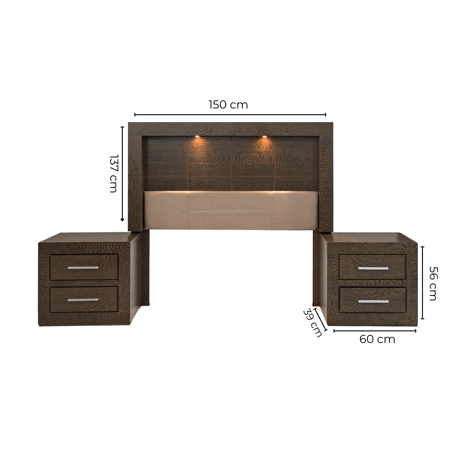Descripción: Hermosa recamara de tamaño Matrimonial. Fabricada en madera de pino estufada y tratada contra plagas y tablero industrializado de madera de pino con acabado semi brillante color capuchino. Medidas: Cabecera: 140 x 157 x 5.; buro: 55 x 56 x 40. Incluye Cabecera y 2 Buros. NOTA: NO INCLUYE BASE NI COLCHON. Los accesorios y otros muebles de las fotografías, se venden por separado. Por efectos de iluminación de la fotografía, algunos tonos de colores pueden variar con respecto al color real. |
