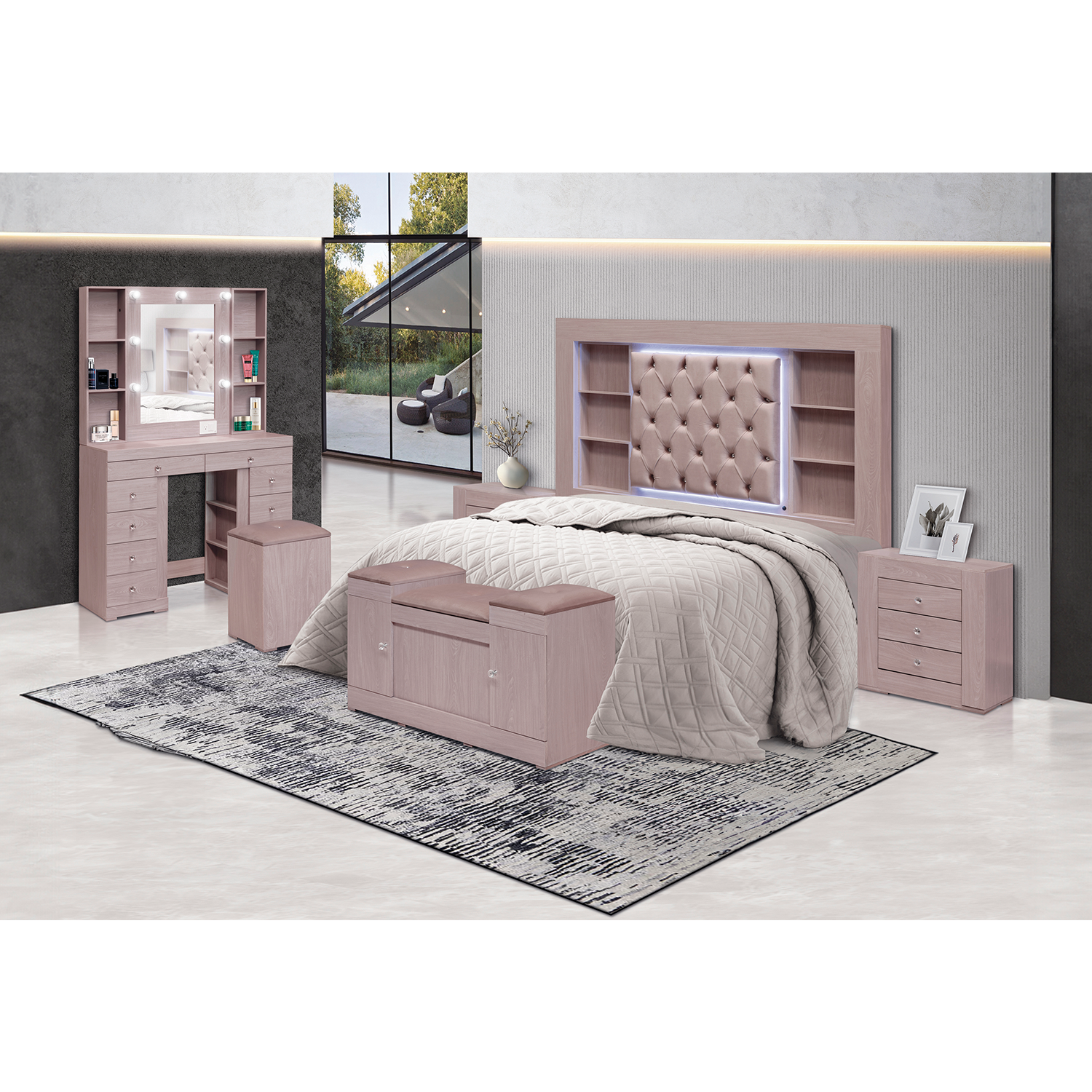 Descripción: Fabricado en Madera y Melamina. Con acabado en color Rosa. Medidas: 200 x 173 x 13 cm. Cabecera 200 x 173 x 13 Buro 60 x 64 x 36 Maquillador 120 x 183 x 36 Taburete 40 x 45 x 30 Baul 120 x 65 x 36. No incluye base ni colchon. NOTA: Los accesorios y otros muebles de las fotografías, se venden por separado. Por efectos de iluminación de la fotografía, algunos tonos de colores pueden variar con respecto al color real. |