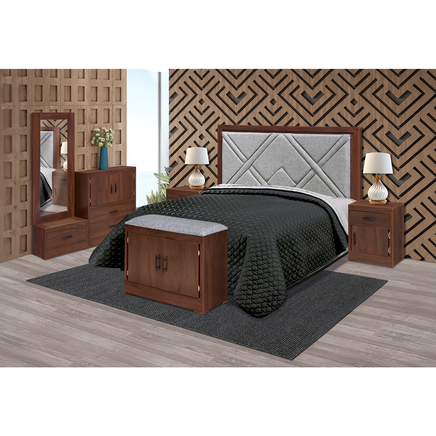 Descripción: Fabricado en Madera y Melamina. Con acabado en color Caoba. Medidas: 200 x 140 x 8 cm. Cabecera 200 x 140 x 8 Buro 50 x 60 x 30 Tocador 80 x 100 x 30 Espejo 30 x 147 x 8 Baul 80 x 30 x 30. No incluye base ni colchon. NOTA: Los accesorios y otros muebles de las fotografías, se venden por separado. Por efectos de iluminación de la fotografía, algunos tonos de colores pueden variar con respecto al color real. |