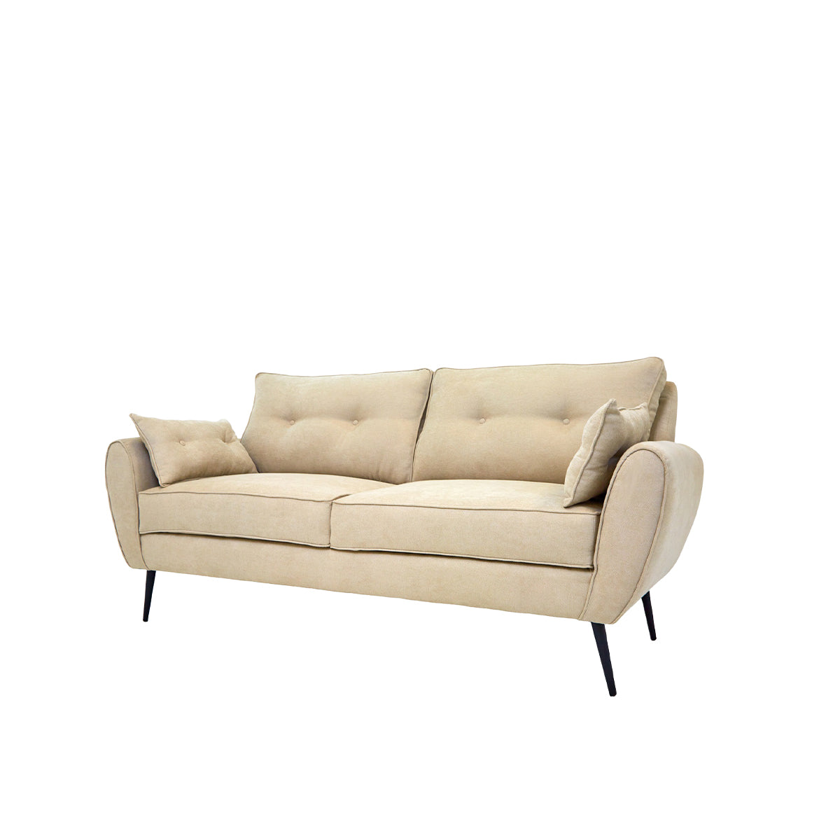 Descripción: Fabricado en Tela. Con acabado en color Beige. Medidas: 183 x 90 x 81 cm. Sofá de 2 plazas con un seductor diseño retro. Estructura de madera de pino de primera, horneada y sin nudos. Las patas son de metal. Densidad del cojín de 24 Kg de hule espuma. La tela contiene fibras de poliéster para mayor comodidad. El sofá viene armado a excepción de las patas que se atornillan de manera fácil y amigable.. NOTA: Los accesorios y otros muebles de las fotografías, se venden por separado. Por efectos de iluminación de la fotografía, algunos tonos de colores pueden variar con respecto al color real. |
