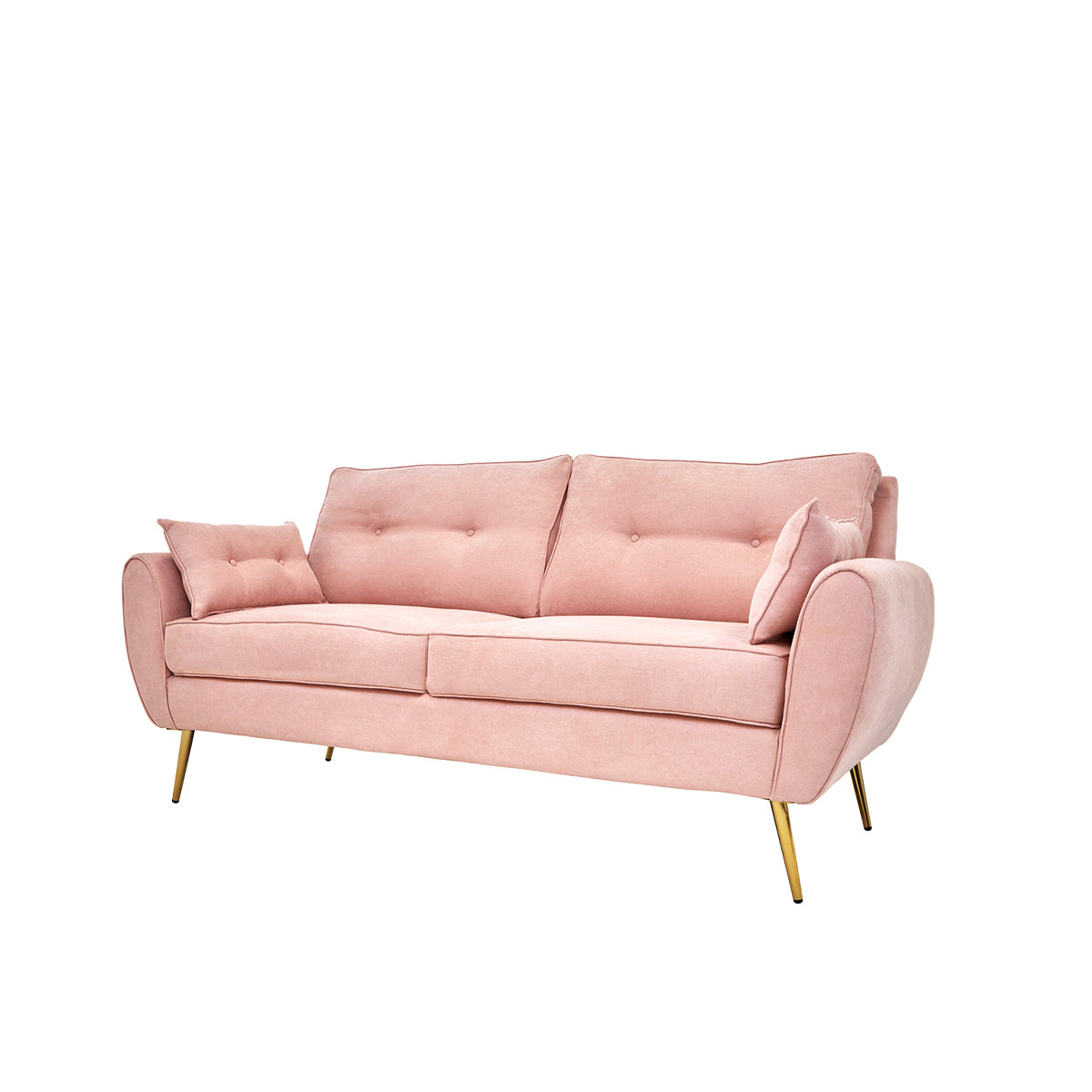 Descripción: Fabricado en Tela. Con acabado en color Rosa. Medidas: 183 x 90 x 81 cm. Sofá de 2 plazas con un seductor diseño retro. Estructura de madera de pino de primera, horneada y sin nudos. Las patas son de metal. Densidad del cojín de 24 Kg de hule espuma. La tela contiene fibras de poliéster para mayor comodidad. El sofá viene armado a excepción de las patas que se atornillan de manera fácil y amigable.. NOTA: Los accesorios y otros muebles de las fotografías, se venden por separado. Por efectos de iluminación de la fotografía, algunos tonos de colores pueden variar con respecto al color real. |