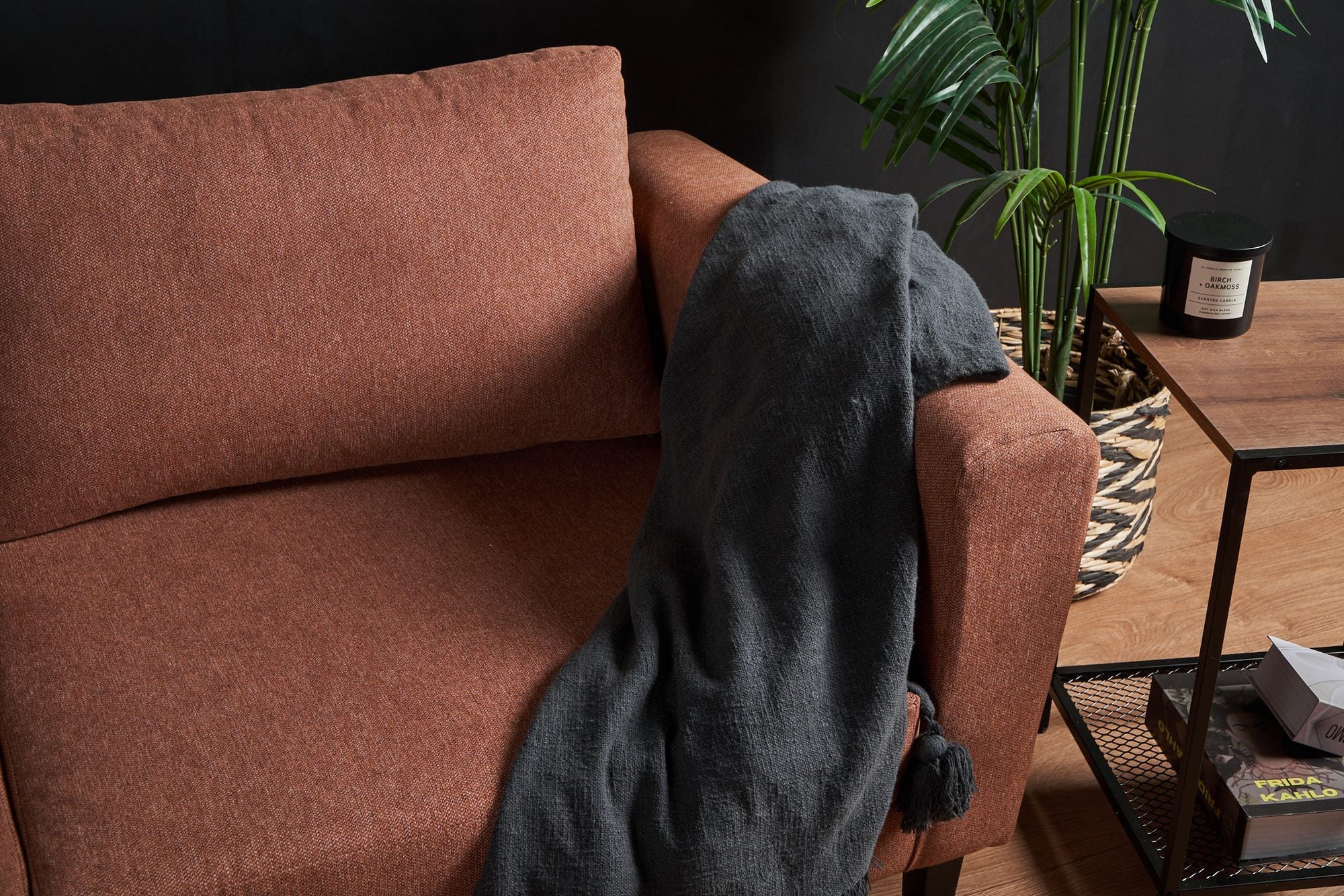 Fabricado en Tela. Con acabado en color Shedron. Medidas: 172 x 80 x 84 cm. pensanda para los espacios reducidos y para los que buscan comodidad. NOTA: Los accesorios y otros muebles de las fotografías, se venden por separado. Por efectos de iluminación de la fotografía, algunos tonos de colores pueden variar con respecto al color real.