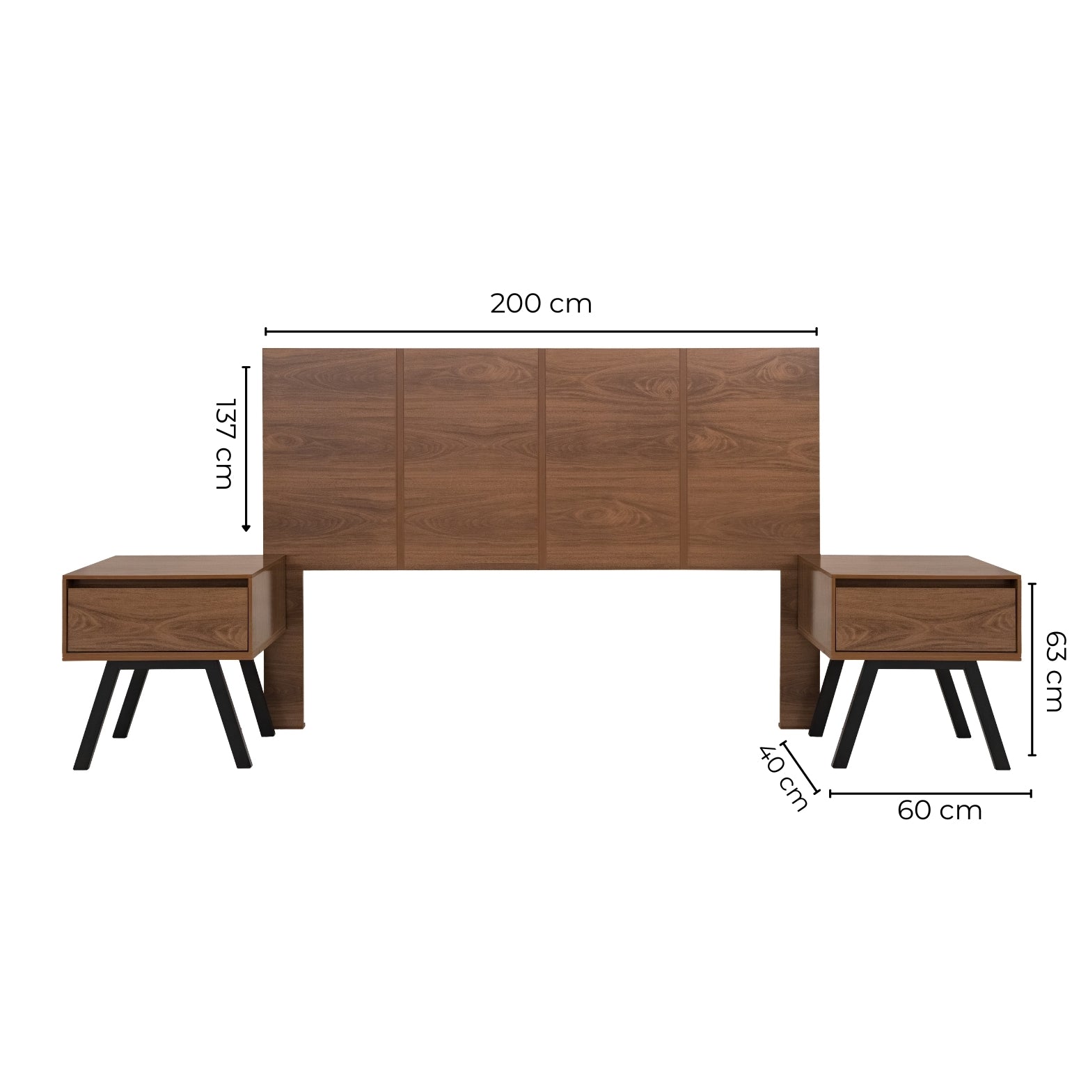 Descripción: Fabricado en Fabricado en Melamina de alta calidad para mayor durabilidad. Con acabado en color Nogal. Medidas: 200 x 137 x 7 cm. Cabecera: 200 x 137 x 7. Buro: 60 x 63 x 40. Transforma tu dormitorio con este set que incluye una cabecera y dos burós, fusionando estética y funcionalidad en un solo conjunto. La cabecera, diseñada para camas tamaño King Size, redefine el descanso con su estilo y acabados de alta calidad, aportando calidez y sofisticación a tu espacio. Las mesas de noche ofrecen almacenamiento eficiente y un diseño versátil que complementa perfectamente cualquier habitación. Fabricados con materiales duraderos y un estilo atemporal, se entregan completamente armados para un uso inmediato. Eleva tu hogar con un conjunto pensado para brindar distinción, orden y confort.. NOTA: Los accesorios y otros muebles de las fotografías, se venden por separado. Por efectos de iluminación de la fotografía, algunos tonos de colores pueden variar con respecto al color real. |