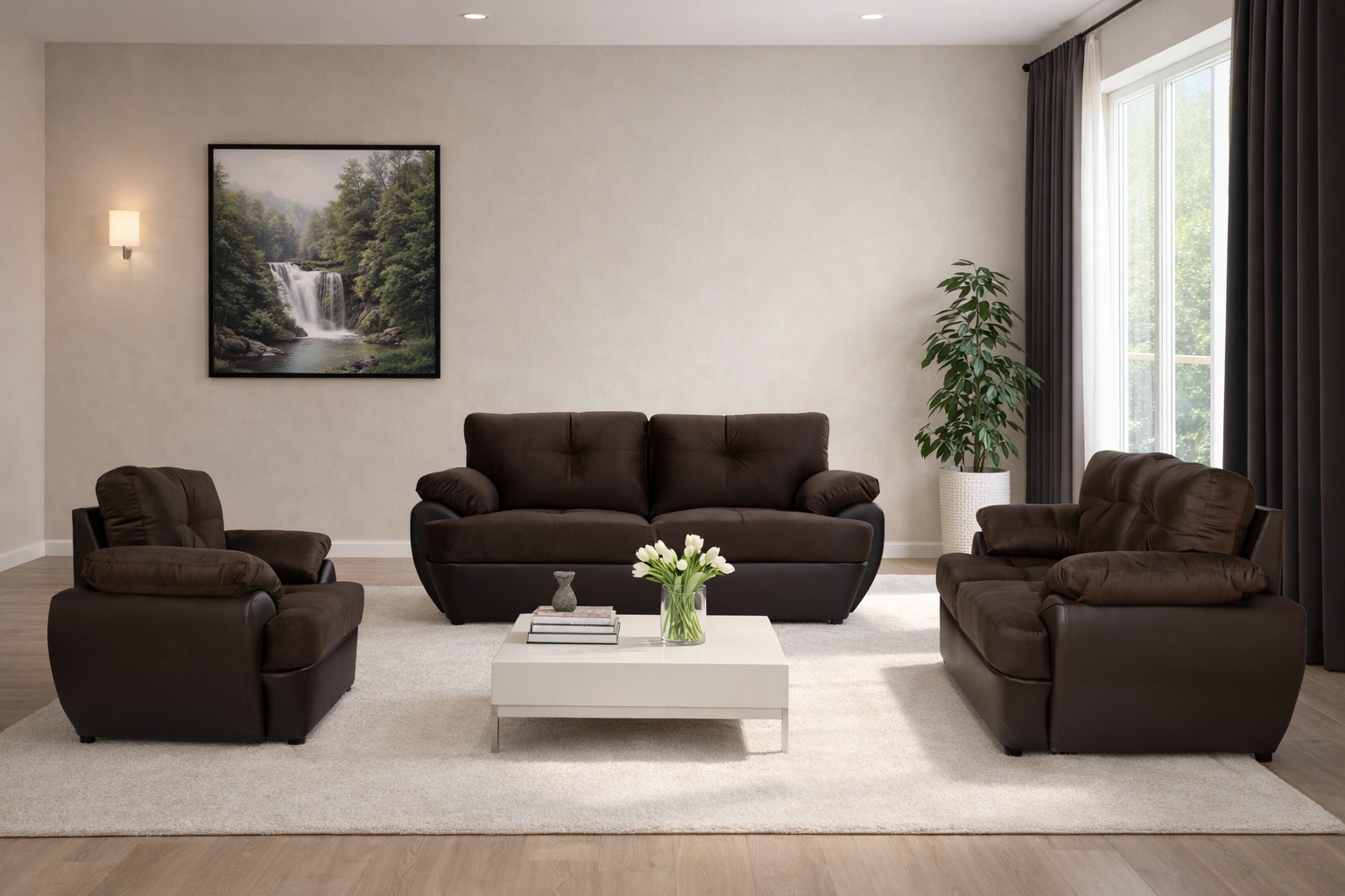 Descripción: Estructura de madera de Pino de 1era, hule espuma de alta densidad. Tela Tacto Piel con Suede. Medidas: 205 x 95 x 86. Colores Disponibles Cocoa. Medidas Love Seat 156 x 95 x 86 Medidas Sillon Individual 110 x95 x 86. NOTA: Los accesorios y otros muebles de las fotografías, se venden por separado. Por efectos de iluminación de la fotografía, algunos tonos de colores pueden variar con respecto al color real. |