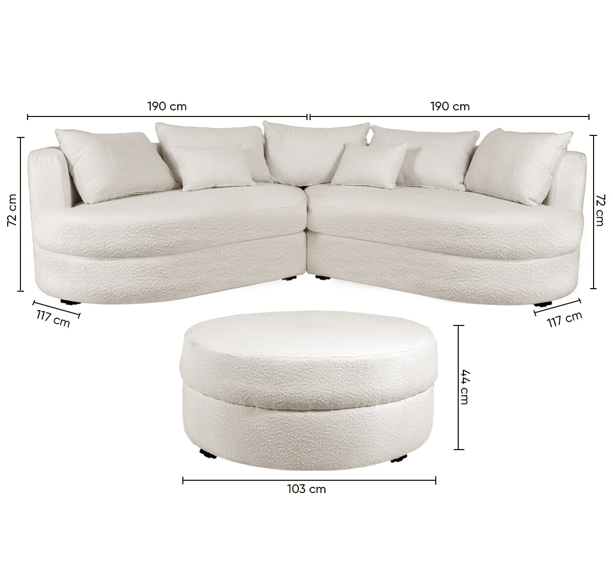 Descripción: Fabricado en Tela. Con acabado en color Hueso. Medidas: 191 x 73 x 108 cm. Estructura de madera de Pino de 1era, hule espuma de alta densidad. Tela Viena para tapizar de microfibra que ofrece un tacto suave y una calidad excepcional. Taburete 104 x 43.5. NOTA: Los accesorios y otros muebles de las fotografías, se venden por separado. Por efectos de iluminación de la fotografía, algunos tonos de colores pueden variar con respecto al color real. |